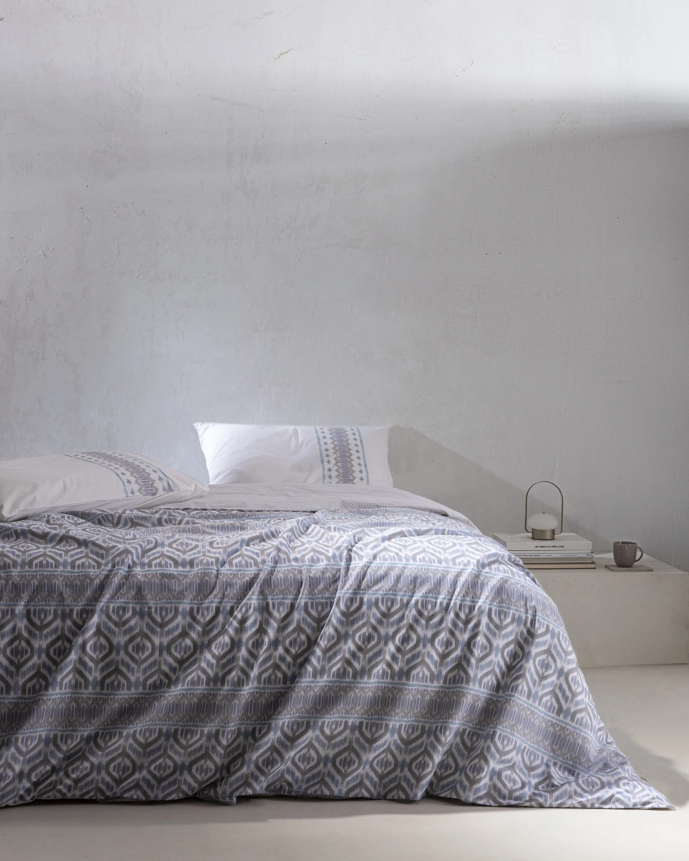 Abrial Double 100% Cotton Ranforce Printed Duvet Cover Set - Grey/Blue