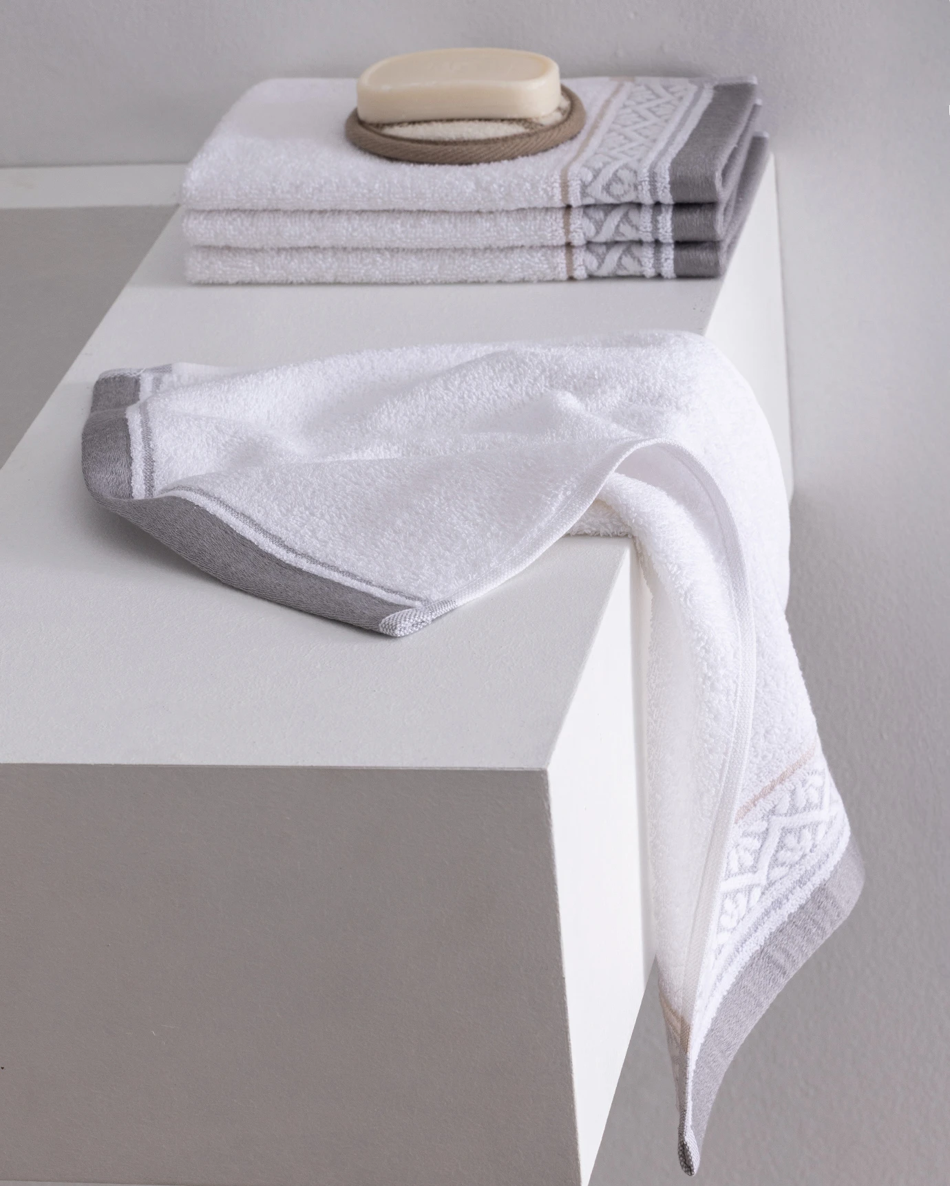 Alouette 4-Piece Cotton Hand Towel Set - White/Gray - 30x45 cm