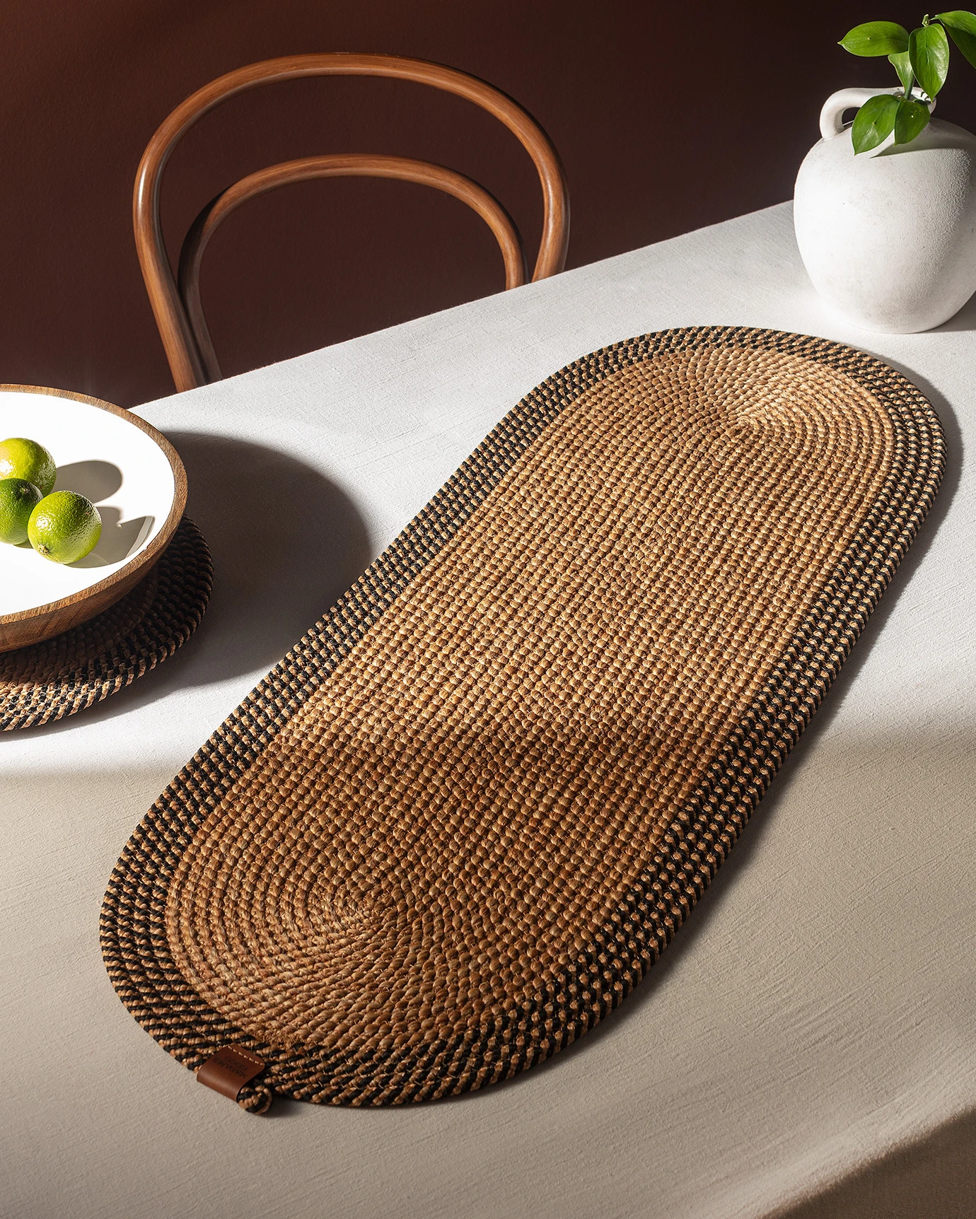 Alsace Table Runner - Natural/BlackA runner, a stylish and practical way to complete your table decoration, is the key to impressing your guests by making every meal special. Our runners, which are offered in various sizes and patterns, offer options to suit every style and taste. You can choose from elegant patterns, vibrant colors or simpler designs according to your preference. In this way, you can complete your table perfectly for every special day or daily use.Technical Specifications: Product Type: 95% Polypropylene, 5% Regenerated Cotton Size: 35x100 cm Color: Natural/Black Production Place: TurkeyPackage Content:Runner: 1 Piece