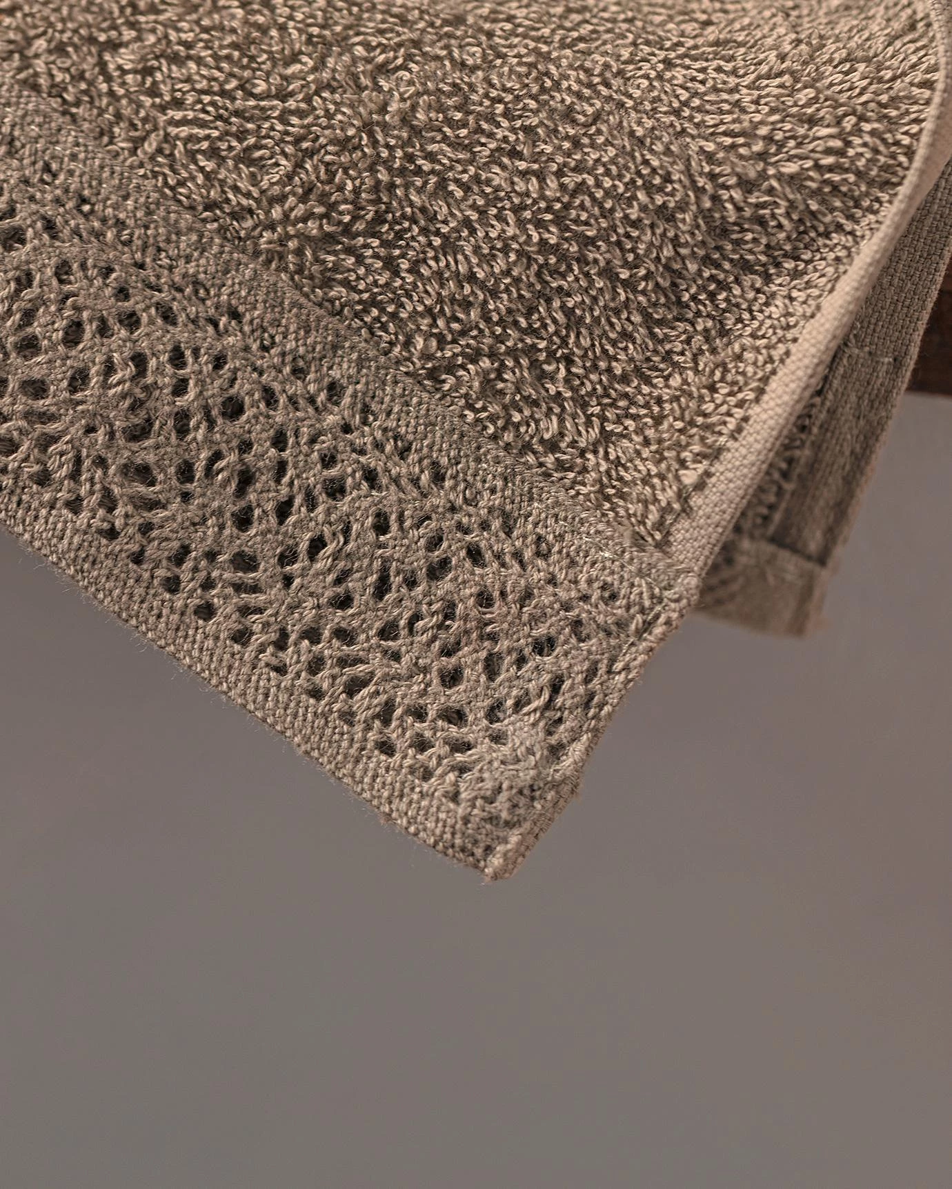 The hand towel, which will change the atmosphere of your bathroom with its natural patterns and colors, is friendly to your skin with its soft texture and high water absorbency.