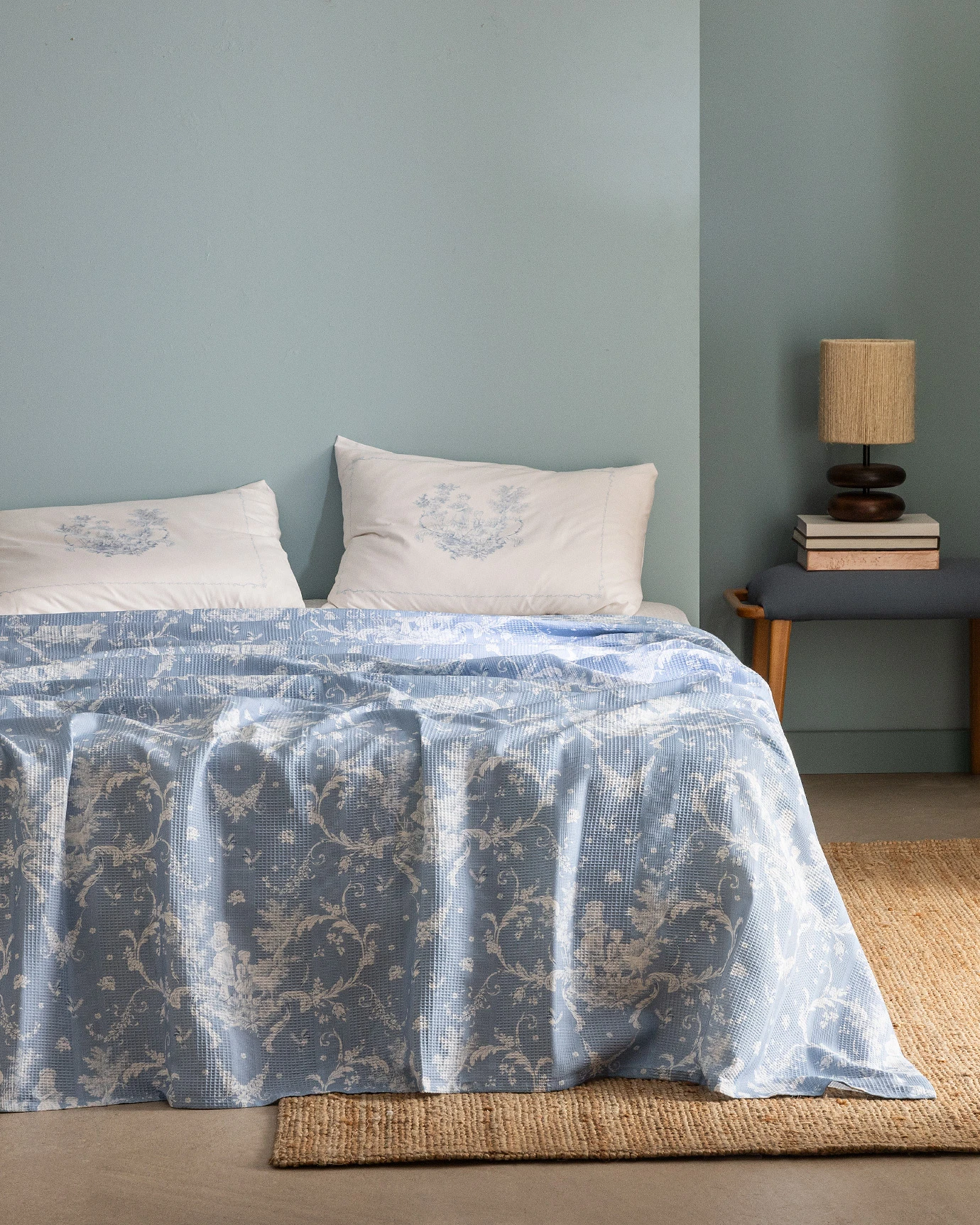 Arlette Double 100% Cotton Carded Printed Bedspread Set - BlueIts the perfect time to refresh your bedroom! With its elegant design and high-quality material, our bedspread set will instantly add style and comfort to your bed.Technical Specifications:Product Type: Double SizeFabric Type: 100% CottonColor: BlueSheet Type: Non-FittedGSM Weight: 180 gr/m²Country of Manufacture: TurkeyDimensions:Bedspread: 200x220 cmSheet: 240x260 cmPillowcase: 50x70 cmPackage Contents:Bedspread: 1 PieceSheet: 1 PiecePillowcase: 2 Pieces