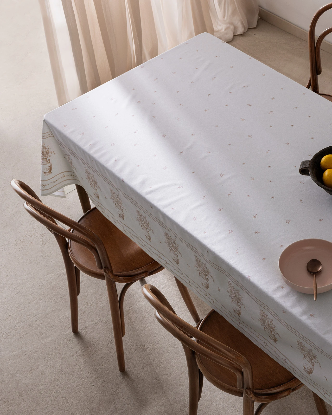 Carel Cotton Tablecloth - Powder - 160x200 cm Featuring a modern design, this tablecloth will add value to your tables. Whether you want to decorate your table or add flair to your daily meals, this tablecloth will turn every bite into a feast. Of course, it's available at Madame Coco!Technical Specifications:Product Type: 50% Cotton, 50% PolyesterColor: Powder PinkSize: 160x200 cmPlace of Production: TurkeyPackage Content: Tablecloth: 1 PieceKullan?m Talimat?:A?art?c? kullanmay?n?z.30 derecede y?kay?n?z.Dü?ük ?s?da makinede kurutma yap?n?z.Orta s?cakl?kta ütüleyiniz.