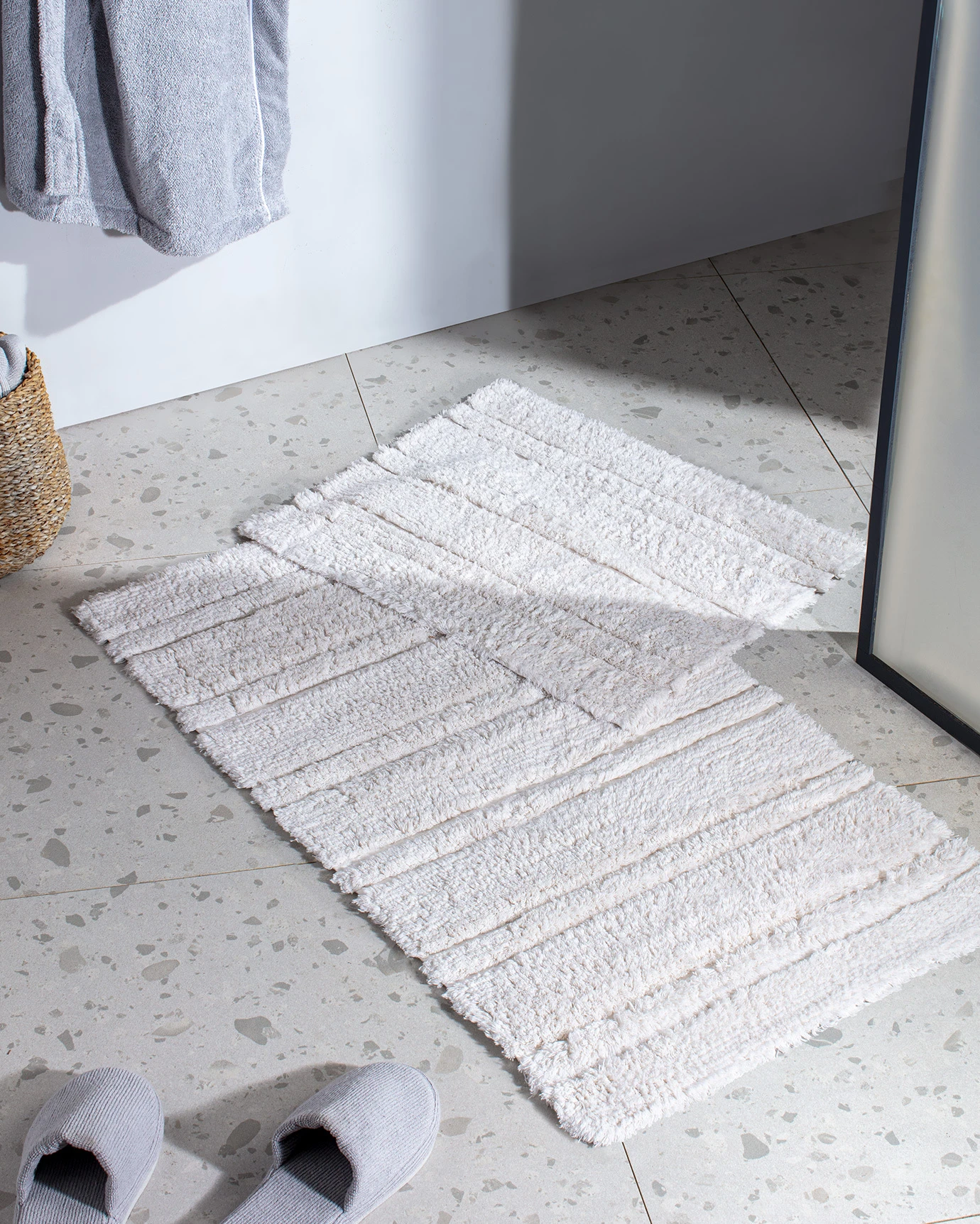 Chard 2 Cotton Bath Mat - Enjoy comfort every step of the way thanks to the soft structure of the EkruBath Mat.Chard 2 Cotton Bath Mat - Enjoy comfort every step of the way thanks to the soft structure of the EkruBath Mat. ThTechnical Specifications:Product Type:65% Cotton,26.8% Polyester,3% Acrylic,2.8% Viscose,2.4% Polyamide Color: Ecru Size: 60x100 + 50x60 cm Place of Manufacture: TurkeyPackage Content:Doormat: 2 PiecesWashing Instructions:Wash at 30 degrees.Do not use bleach.Do not dry in the machineWashing Instructions:t possible.