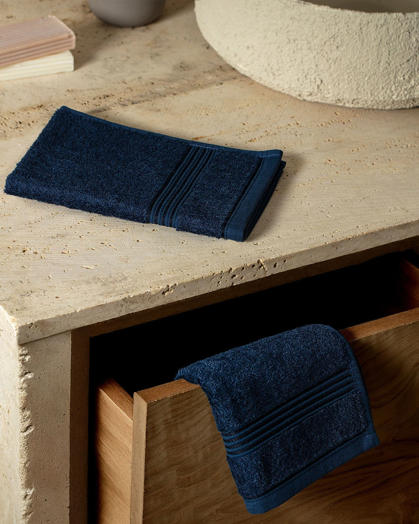 Clarette 2-Piece Cotton Hand Towel - Navy Blue - 30x46 cmYou can use this hand towel set, which brings simplicity to our bathrooms, daily if you wish, or you can keep it for your guests.Clarette 2-Piece Cotton Hand Towel - Navy Blue - 30x46 cmYou can use this hand towel set, which brings simplicity to our bathrooTechnical Specifications:Fabric Type:60% Cotton,40% ViscoseColor: Navy BlueSize: 2x(30x46)cmGsm Weight: 500 gr/m2Place of Manufacture: TurkeyPackage Content:Towel: 2 PiecesWashing Instructions:*Wash at 30 degrees.*Iron at medium temperature.*Do not use bleachWashing Instructions:*Wash at 30 degrees.*/