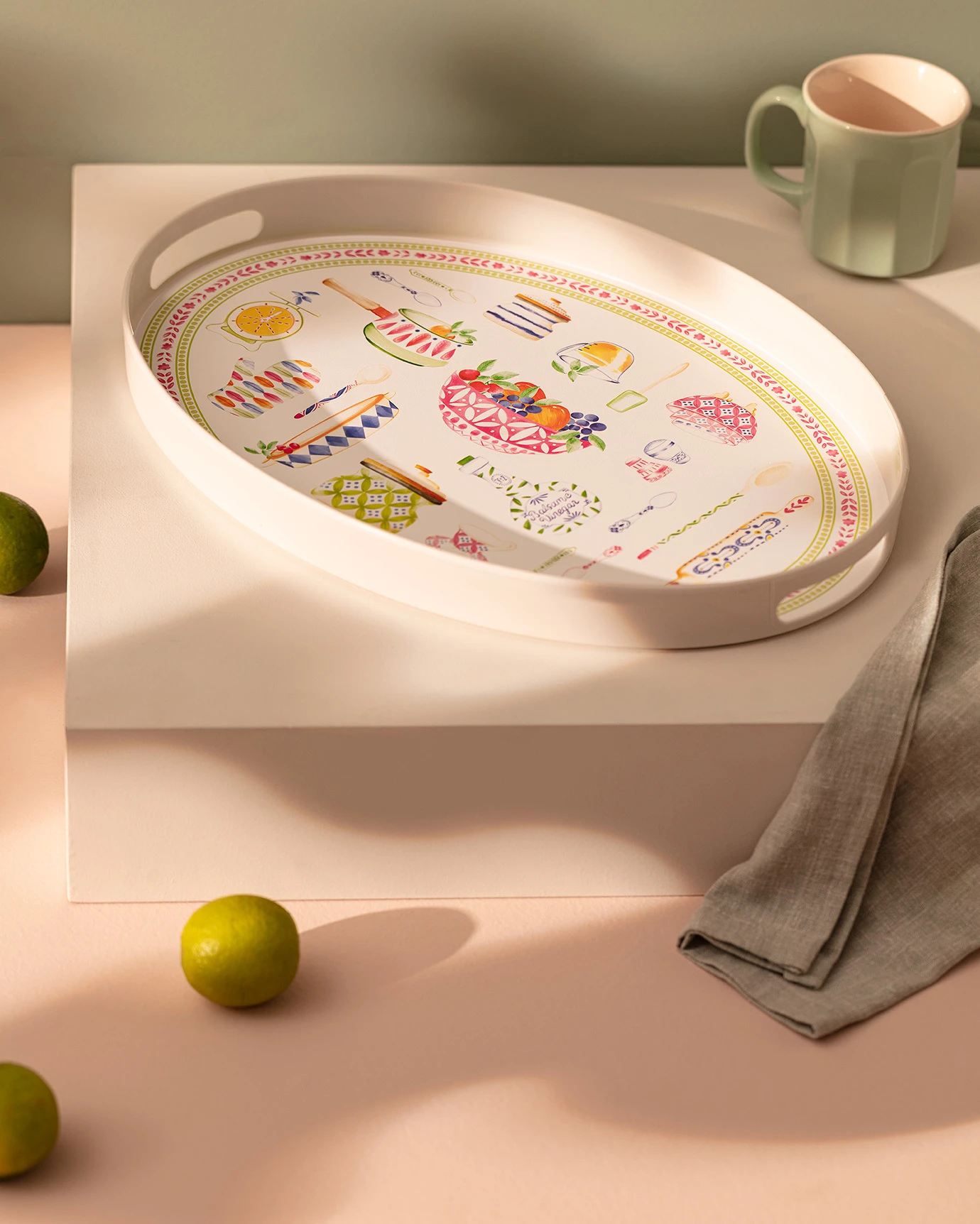 Cuisine Oval Tray - Green/Pink