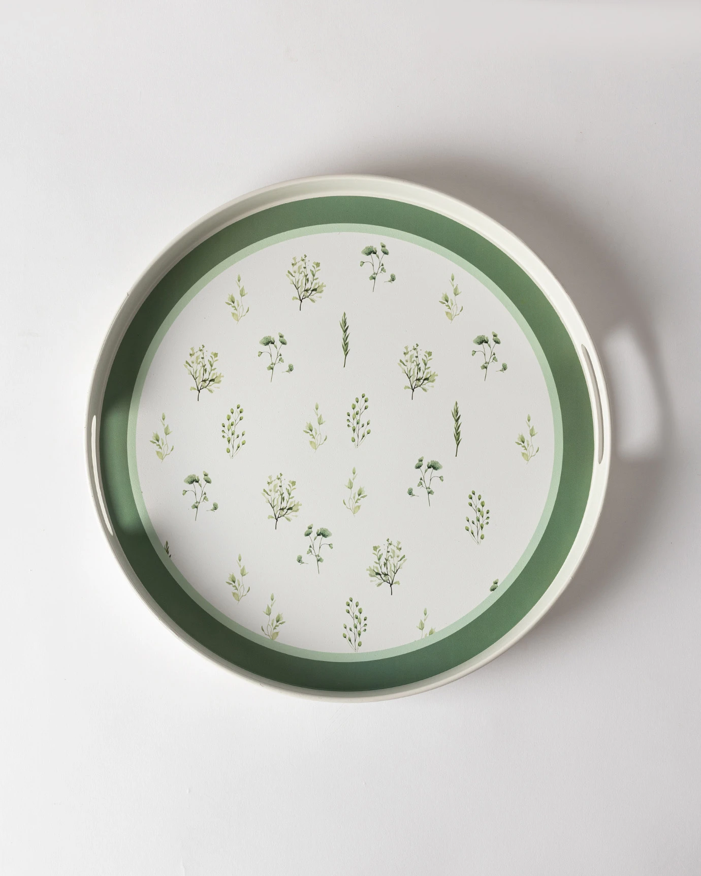 Delmare Round Tray - White/GreenThis tray, which prevents clutter, harmonizes with any decor thanks to its color scheme. Thanks to its stunning design, this tray adds visual appeal to any space. You can use it for decorative purposes or to store your belongings..Technical Specifications:Product Type: PlasticColor: White/GreenSize: 35x35x3.7 cmPlace of Manufacture: TurkeyPackage Contents:Tray: 1 Piece