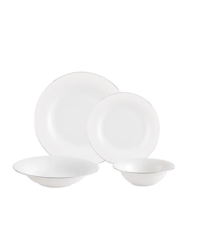 Dormir 6 Person 24 Piece Dining Set - White/SilverEv This dining set, which will make your meals and special invitations even more special, gives confidence with its durable structure while dazzling with its elegance. This suit, which makes your table look stylish, offers a pleasant eating experience at every meal.Technical Specifications:Product Type: New BoneRenk: White/Silver Place of Production: Turkey Meter:6 Pieces Bowl: 14 cm6 Pieces Dinner Plate: 20 cm6 Pieces Pie Plate: 19 cm6 Pieces Serving Plate: 27 cmPackage Contents: 6 Bowls, 6 Dinner Plates, 6 Pie Plates, 6 Serving Plates