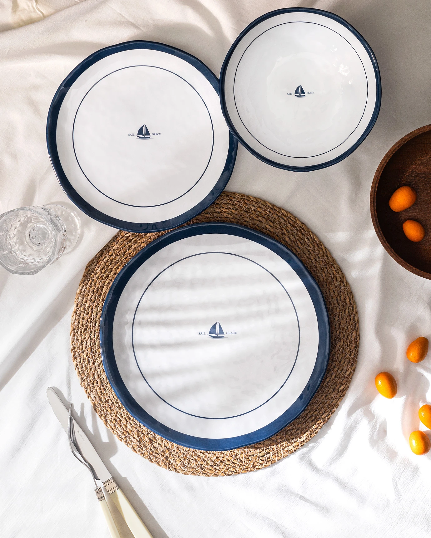 Fanette 18 Piece Dinner Set for 6 People - Blue/White