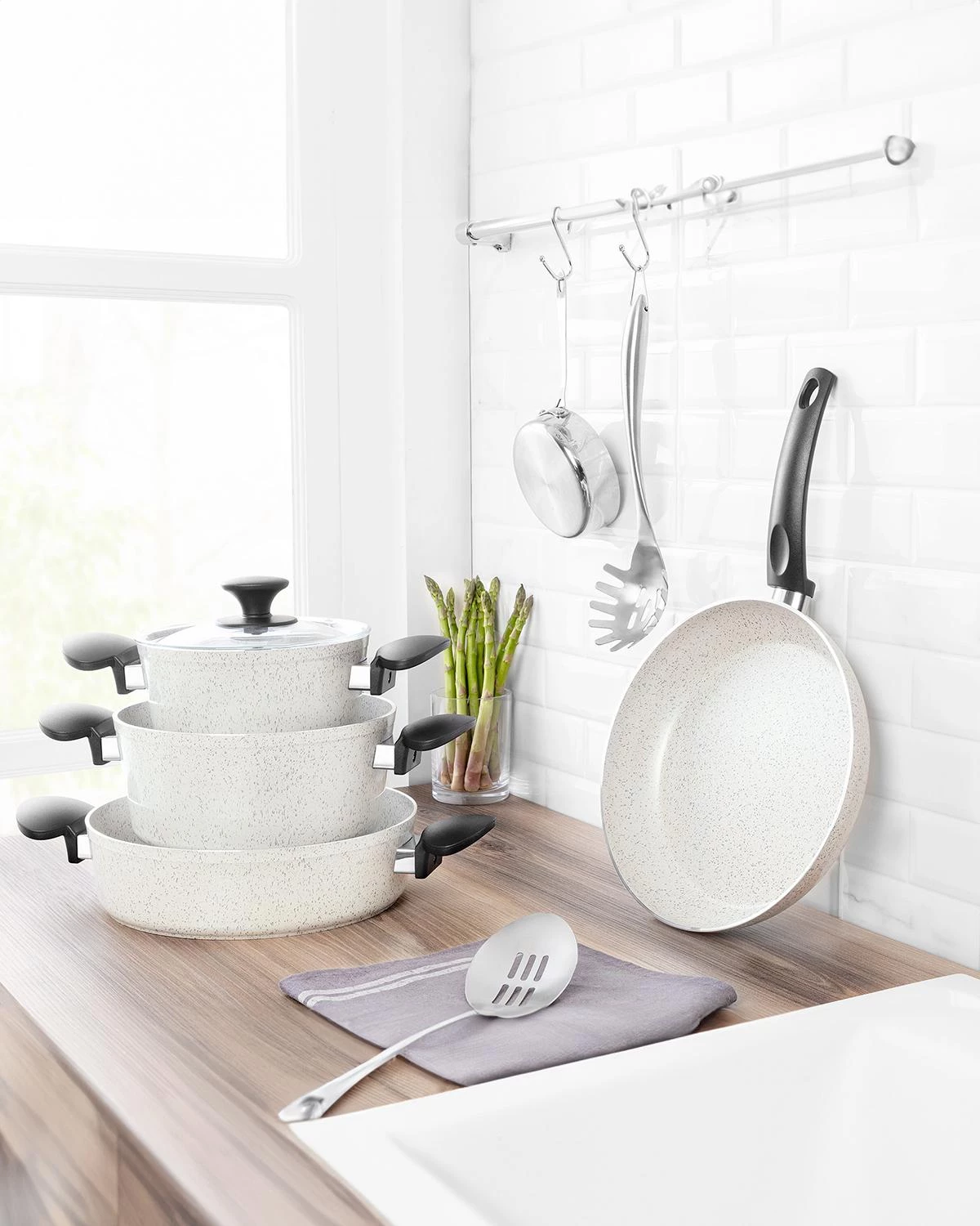Gordes Granite Look 7 Piece Cookware Set, offering Everything You Need To Prepare Your Favorite Dishes; Gordes Granite Look 7 Piece Cookware Set Gives You A Healthy And Delicious Cooking Experience. Its Non-Stick Surface Makes Cooking And Cleaning Practical And Provides Ease Of Use. Thanks To Its Scratch-Resistant Structure; It Can Be Used Easily For Many Years. You Can Catch Taste And Harmony In Your Kitchen With Modern And Stylish Color Options.