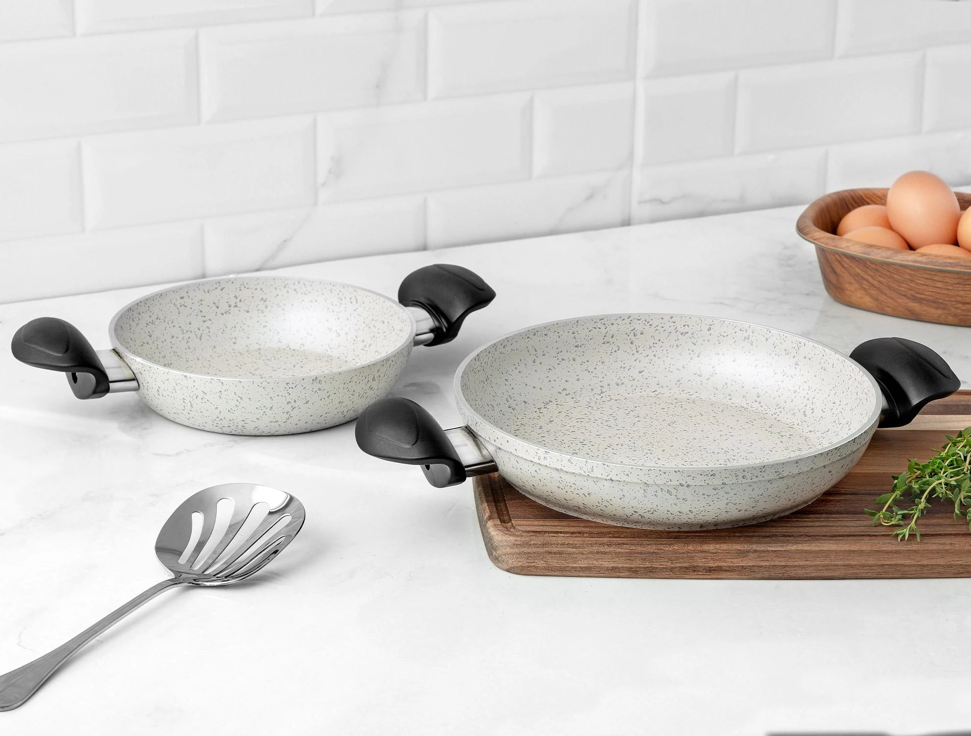 Gordes Granite Look 2 Piece Pan Set - Cream