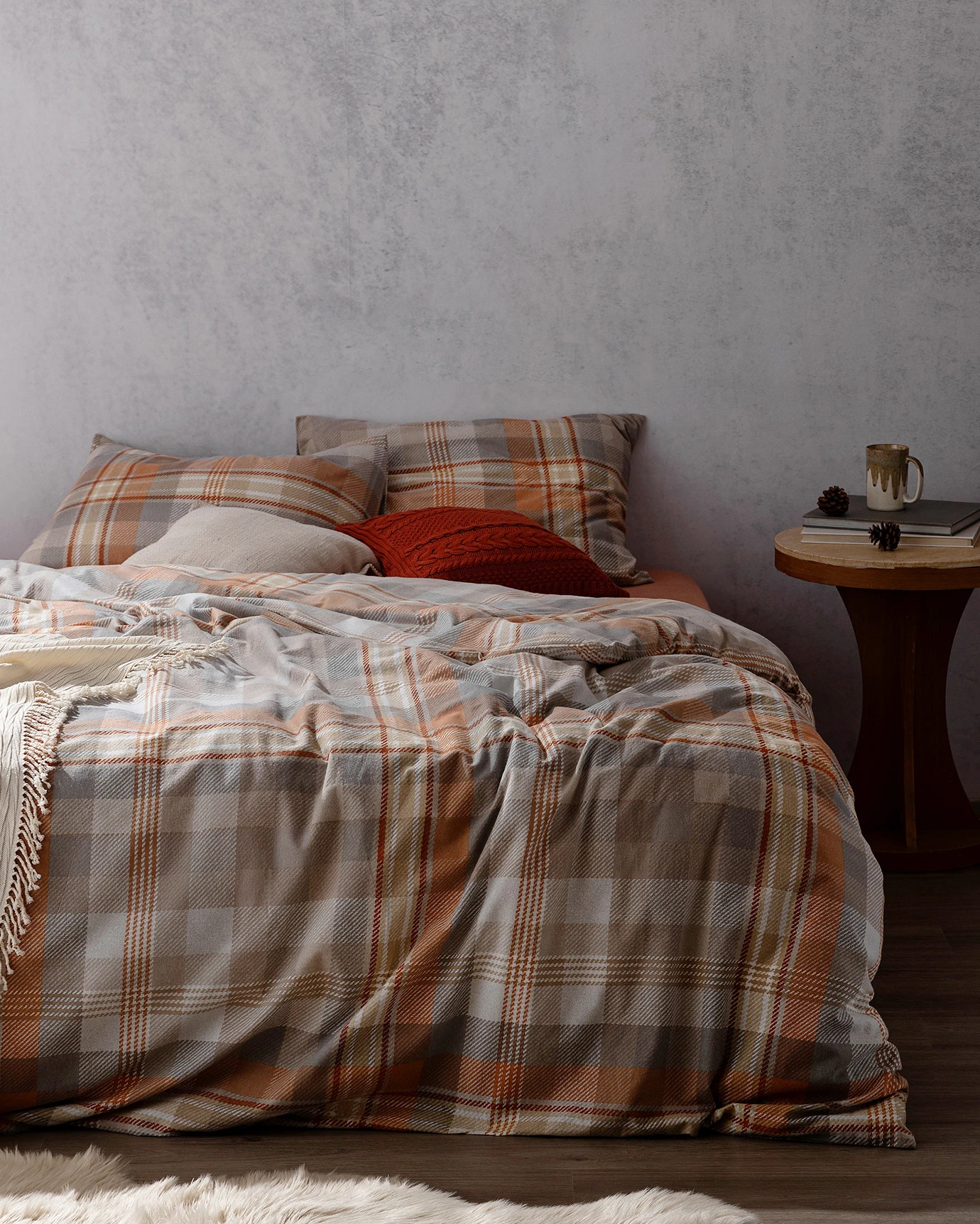 Gustave Super King Duvet Cover Set - Flannel - Beige\Orange