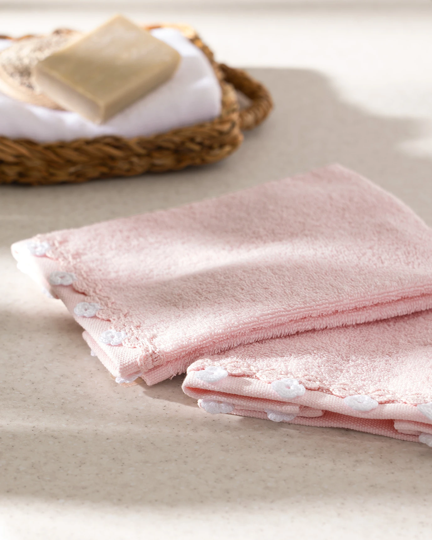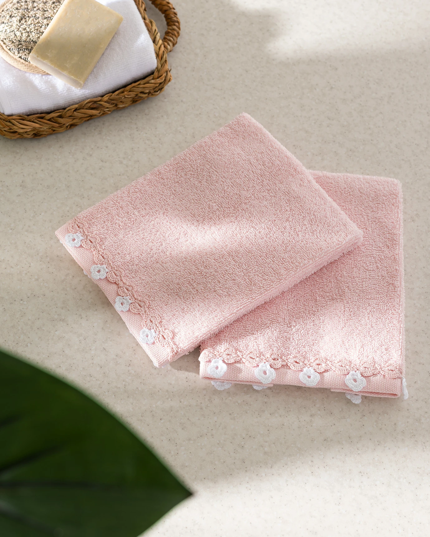 Jeanne Crocheted 2-Piece 100% Cotton Hand Towel Set - Powder - 30x40 cmWhether you use this hand towel set daily or save it for guests, it brings a touch of simplicity to your bathroom. Madame Coco is pleased to present this towel set, which will add a fresh touch to your bathroom and brighten your day every time you see it.Technical Specifications: Fabric Type: 100% Cotton Color: Powder Pink Size: 2x(30x40) cm GSM Weight: 450 g/m² Production Place: TurkeyPackage Content: