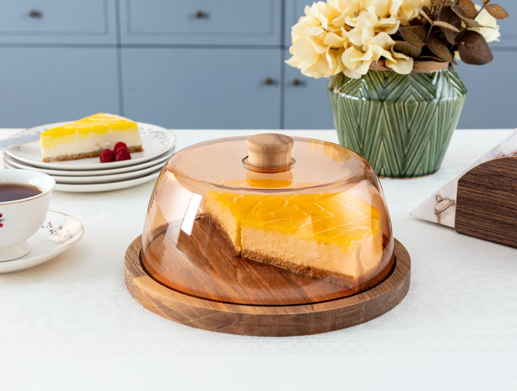 Josette Cake Bell Jar offers the perfect solution for storing your freshly baked delicacies in style. Its colorful lid ensures that your cake stays fresh, while the wooden look base adds a natural and stylish touch to your presentation.