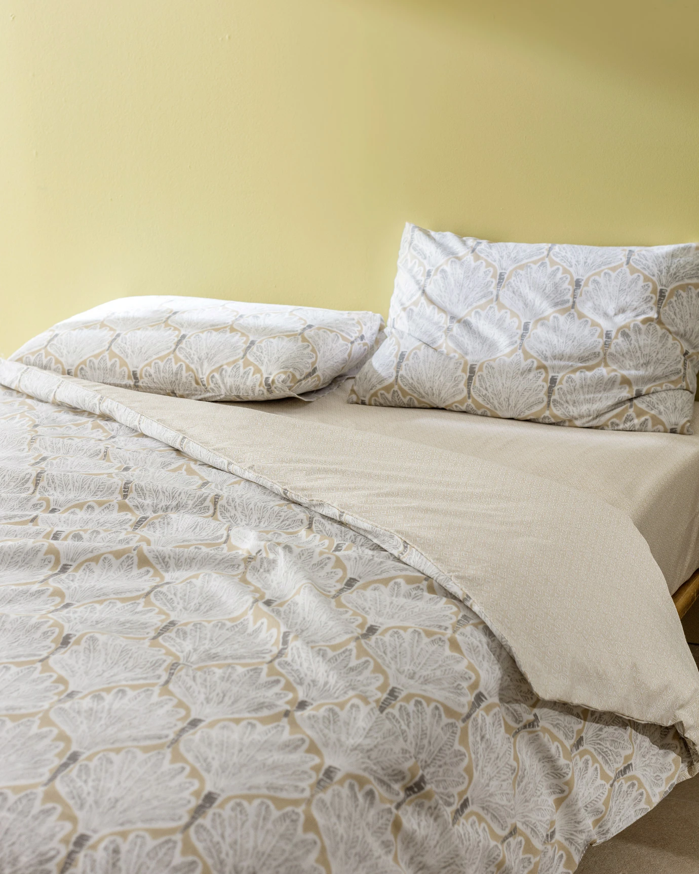 Kerman King Size Printed Duvet Cover Set - Beige/Grey