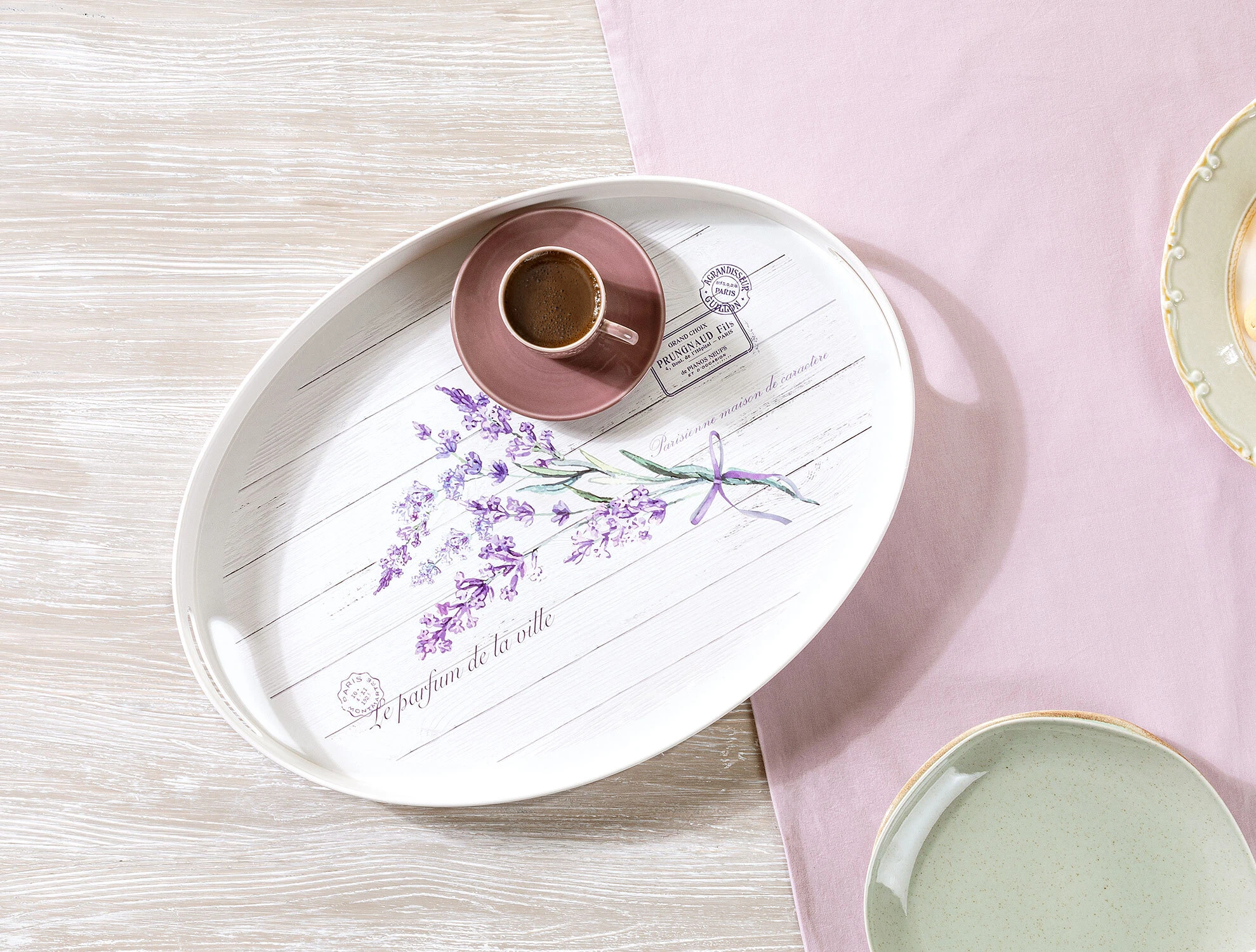 The surface of Lavander Oval Tray, which allows you to safely carry your treats such as tea and coffee to your guests, will dazzle with its simplicity. The presentation tray, which will not take up space in your kitchen thanks to its form, comes to your kitchen with the advantages of Madame Coco.Technical Specifications: