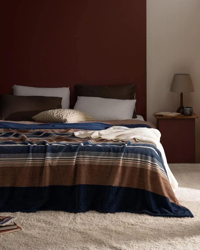 Magne Double Welsoft Polar Printed Blanket - Navy Blue/Coffee