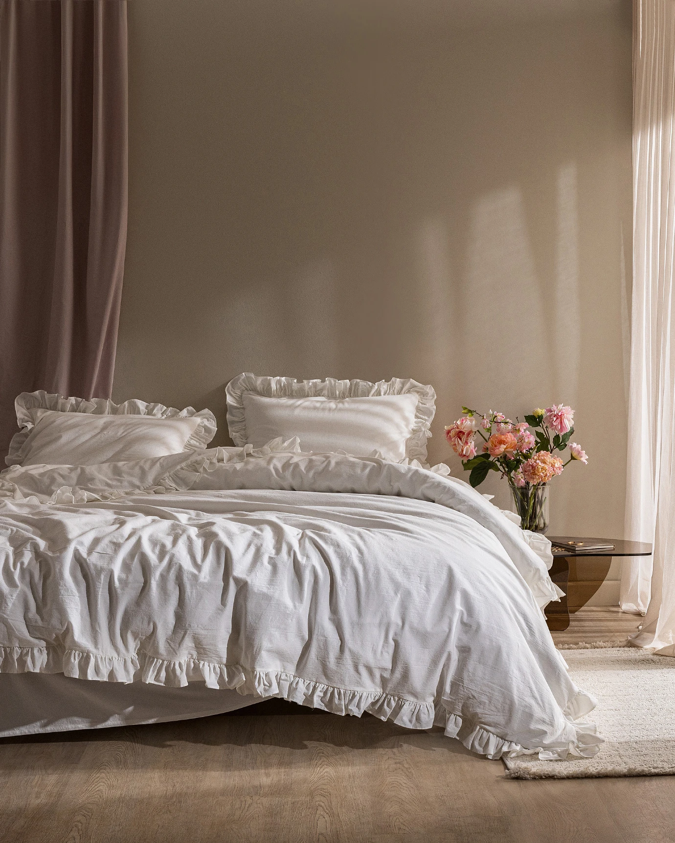 Obernai Double 100% Cotton Ruffled Flat Wash Duvet Cover - WhiteStanding out with its soft texture and elegant design, the flat wash duvet cover adds a simple but stylish touch to your bedroom.Obernai Double 100% Cotton Ruffled Flat Wash Duvet Cover - WhiteStanding out with its soft texture and elegant design, the flat wash duvet cover adds a simple but stylish touch to your bedroom. While offering extra softness and comfort thanks to the spTechnical Specifications:Product Type: Double PersonFabric Type:100% CottonColor: WhiteBed Sheet Type: Without TiresNumber of Wires: 55 Wires - 140 TCPlace of Manufacture: TurkeySize:Duvet Cover: 200x220 cmBed Sheet: 240x260 cmPillowcase: 50x70 cm< /pPackage Content:Duvet Cover: 1 PieceSheet: 1 PiecePillow Case: 2 PiecesCottonWashing Instructions:*Wash at 30 degrees.*Do not use bleach.*Machine dry at low heat