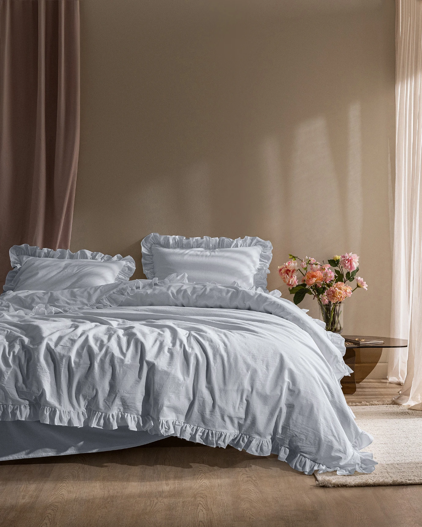 Obernai Single Person 100% Cotton Ruffled Flat Washable Bedding Set - BlueThis set stands out with its high-quality fabric that has undergone a special washing process. It offers a soft and smooth feel from the very first use. Thanks to the washing process, the set's color does not fade and the fabric does not become dull. This ensures you get a product that is durable for long-term use. This bedding set is available at Madame Coco with its no-iron look!Technical Specifications:Product Type: SingleFabric Type: 100% CottonColor: BlueSheet Type: Non-elasticPlace of Manufacture: TurkeyDimensions:Duvet Cover: 160x220 cmSheet: 160x240 cmPillowcase: 50x70+5 cmPackage Contents:Duvet Cover: 1 PieceBed Sheet: 1 PiecePillow Cover: 1 PieceWashing Instructions: Wash at 30 degrees. Do not use bleach. Machine dry at low temperature.Iron at medium temperature. Cannot be dry cleaned. Wash inside out with similar colours.