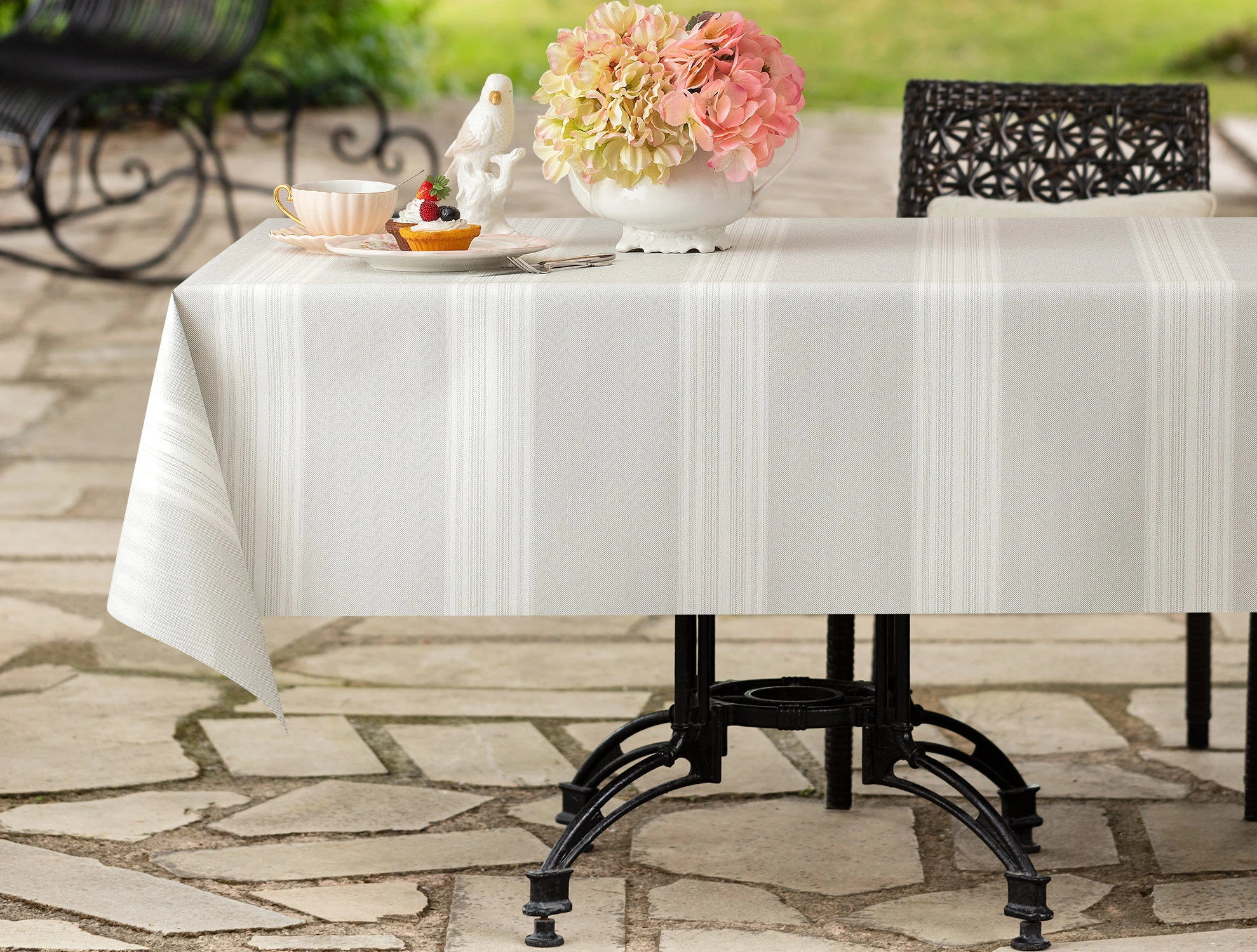 Madame Coco Raymond tablecloth is a sophisticated and stylish addition to any dining setting.
