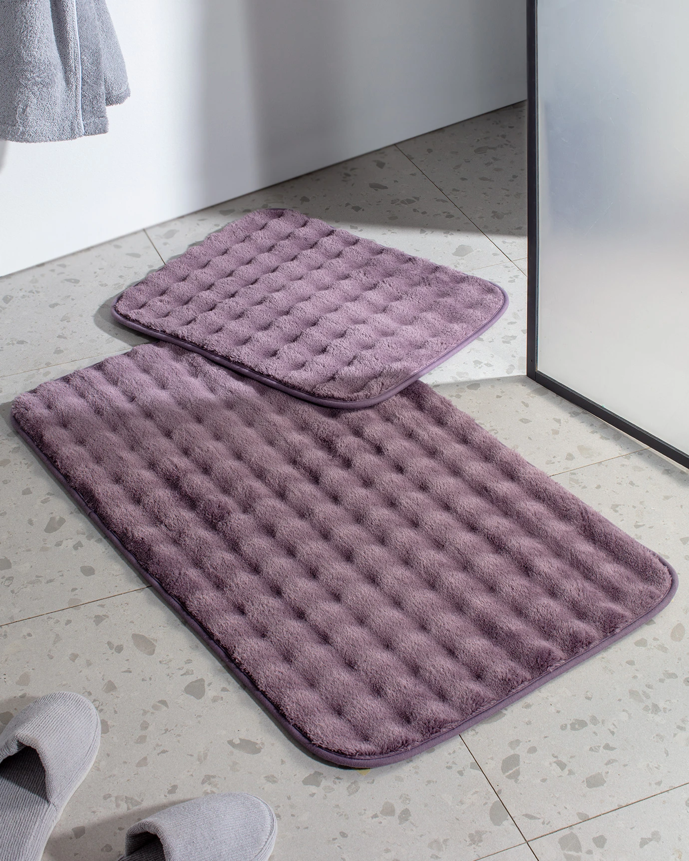 Reflet Bubble 2 Bath Mat - Dark MudimEnjoy comfort every step of the way thanks to the soft structure of the Bath Mat.Reflet Bubble 2 Bath Mat - Dark MudimEnjoy comfort every step of the way thanks to the soft structure of the Bath pTechnical Specifications:Product Type: 100% PolyesterColor: Dark PlumSize: 60x100 + 50x60 cmPlace of Manufacture: TurkeyPackage Contents:Doormat: 2 Pieces