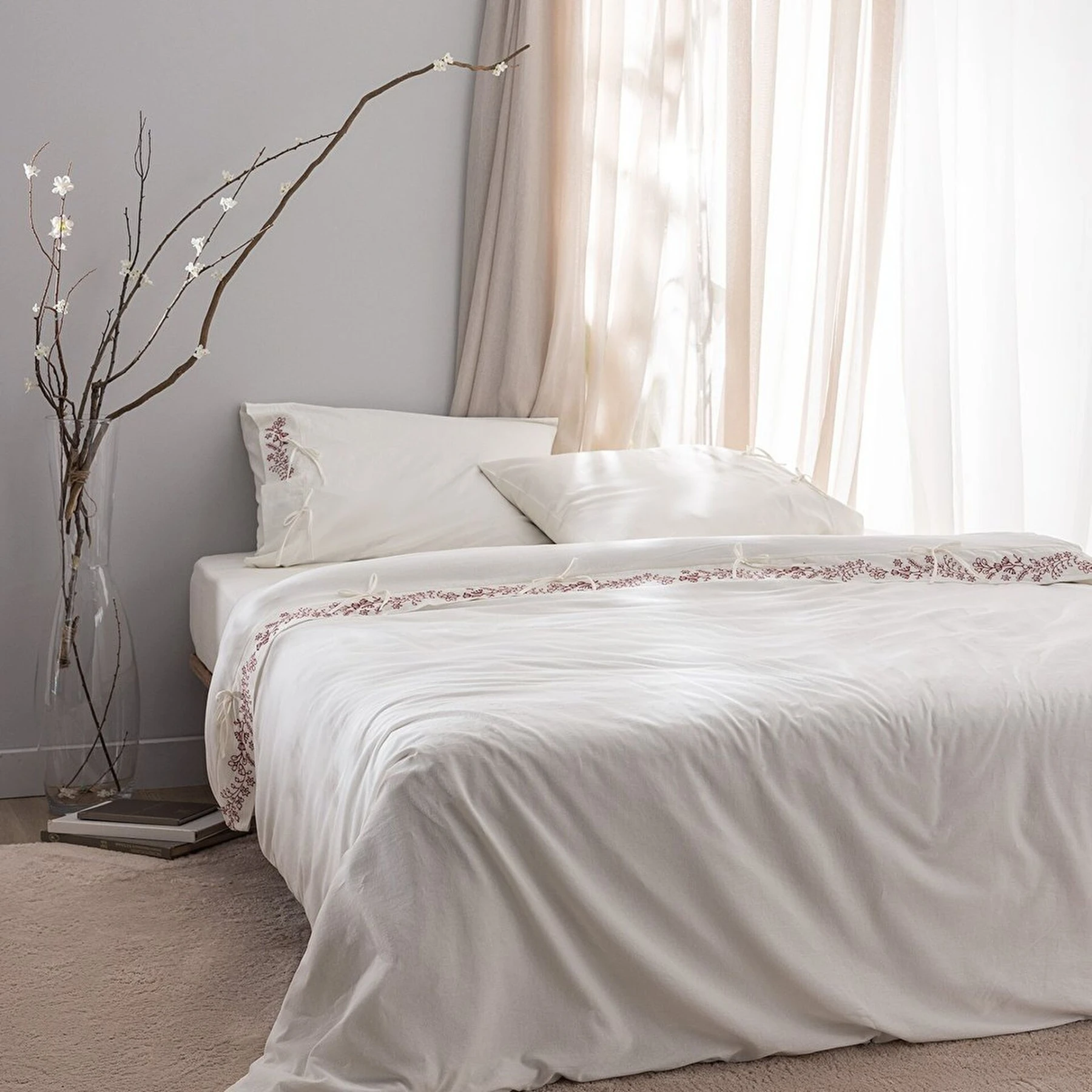 Relief King Size 100% Cotton Tied Duvet Cover Set - Ecru/Red