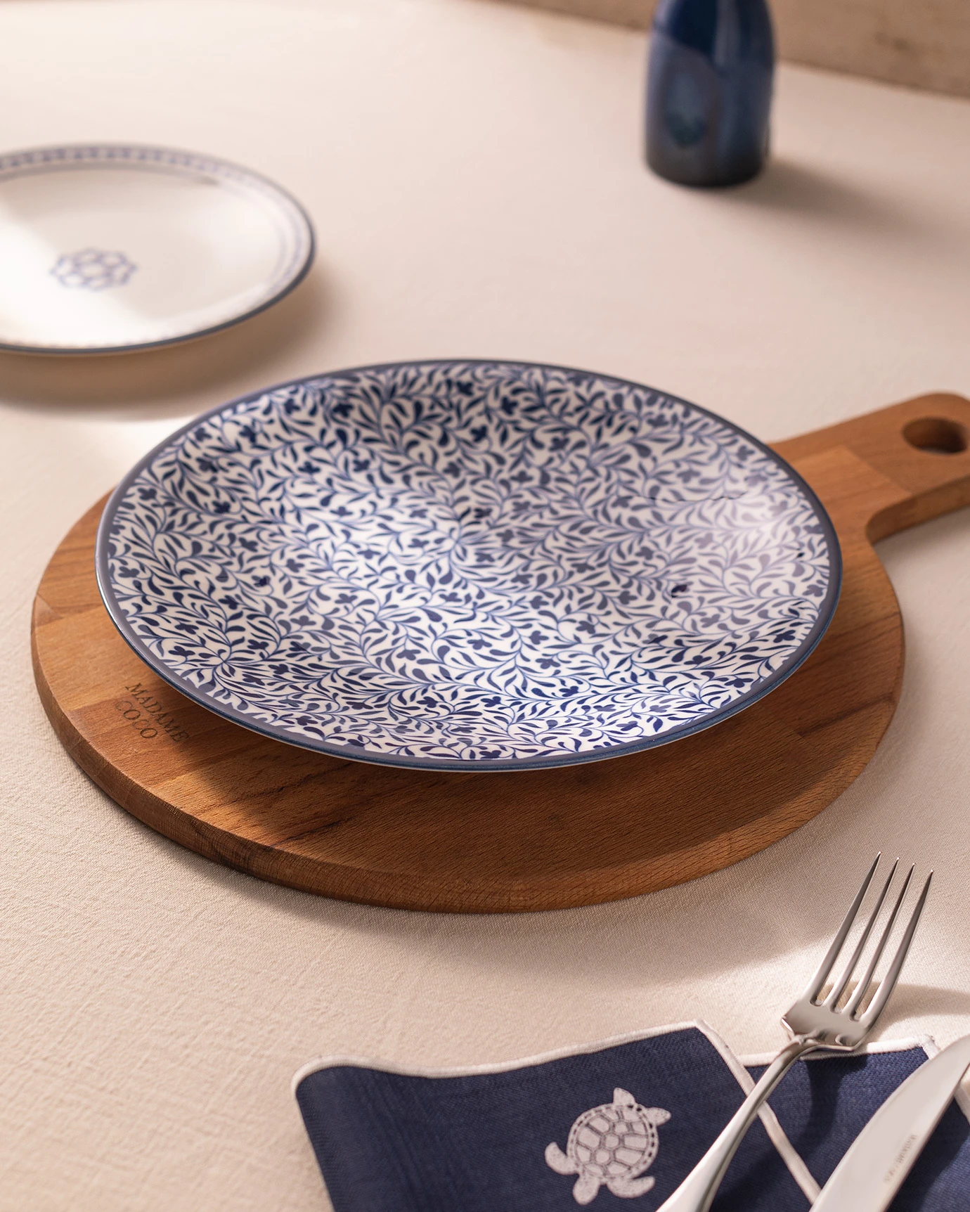 Get ready to make a difference in your presentations with the Reve Bleu series! Madame Coco offers this stylish plate with motifs that will add an ethno-modern atmosphere to your modern tables with its ethnic design.