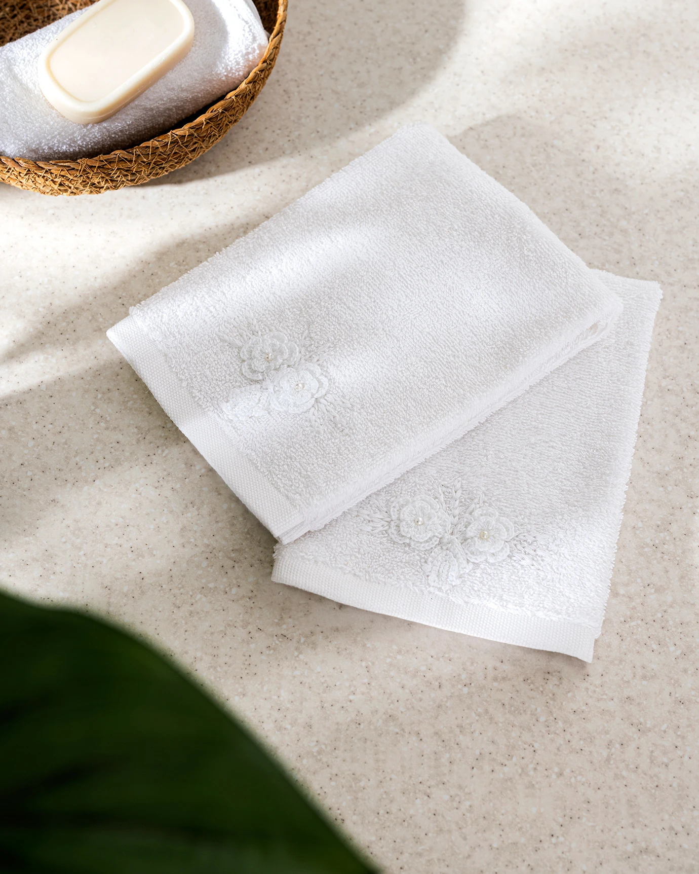 Rosabell 2% Cotton Crochet Hand Towel - White - 30x40 cmYou can use this hand towel set, which brings simplicity to our bathrooms, on a daily basis if you want, if you want, you can save it to your guests.Rosabell 2% Cotton Crochet Hand Towel - White - 30x40 cmYou can use this hand towel set, which brings simplicity to our bathrooms,Technical Specifications:Fabric Type:100% CottonColor: WhiteSize: 2x(30x40)cmGsm Weight: 450 gr/m2Place of Manufacture: TurkeyPackage Content:Towel: 2 PiecesWashing Instructions:*Wash at 30 degrees.*Iron at medium temperature.*Do not use bleachWashing Instructions:*Wash at 30 degrees.*/
