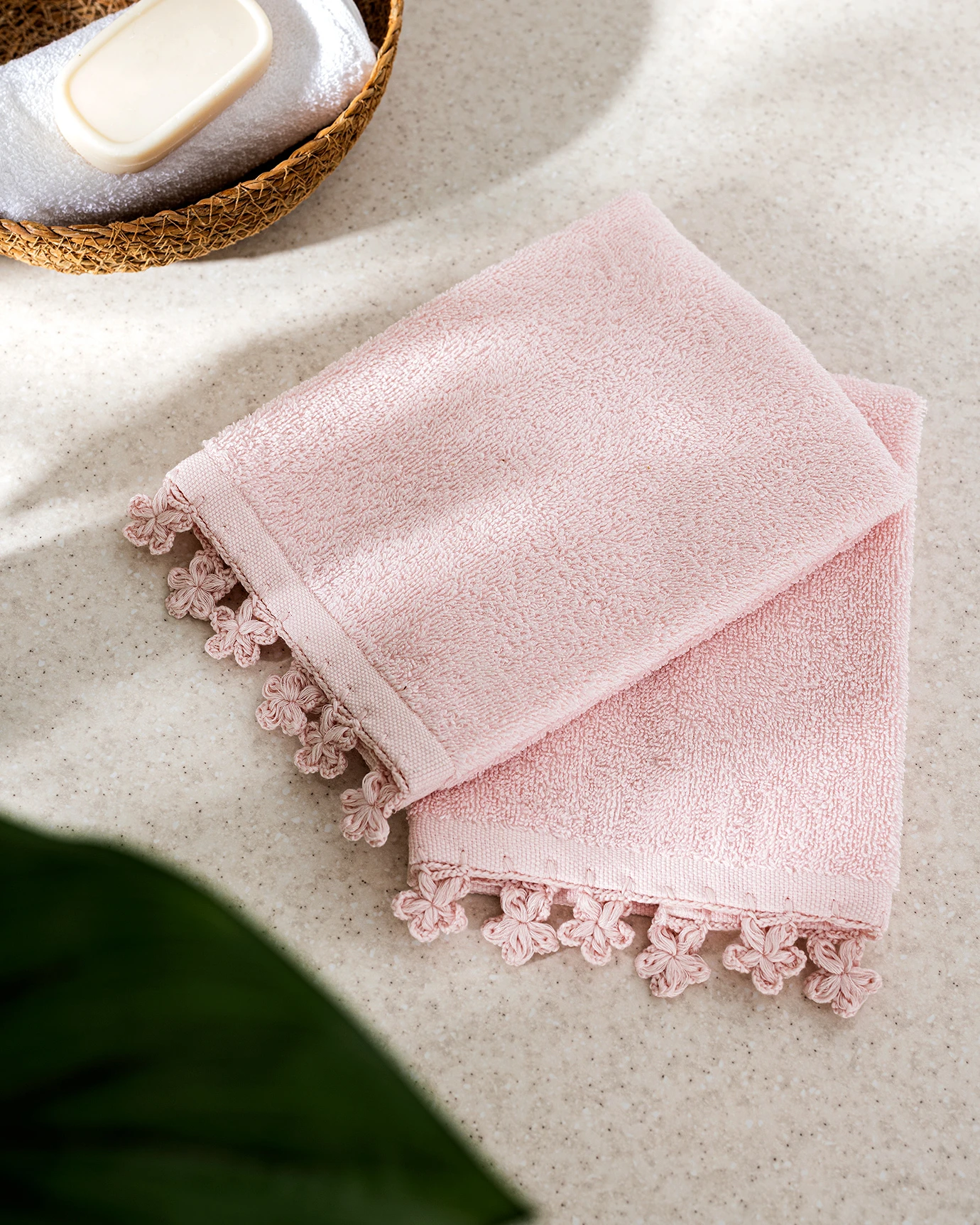 Ruth Crocheted 2-Piece 100% Cotton Hand Towel Set - Powder - 30x40 cmWhether you use this hand towel set daily or save it for guests, it brings a touch of simplicity to your bathroom. Madame Coco is pleased to present this towel set, which will add a fresh touch to your bathroom and brighten your day every time you see it.Technical Specifications: Fabric Type: 100% Cotton Color: Powder Pink Size: 2x(30x40) cm GSM Weight: 450 g/m² Production Place: TurkeyPackage Content: