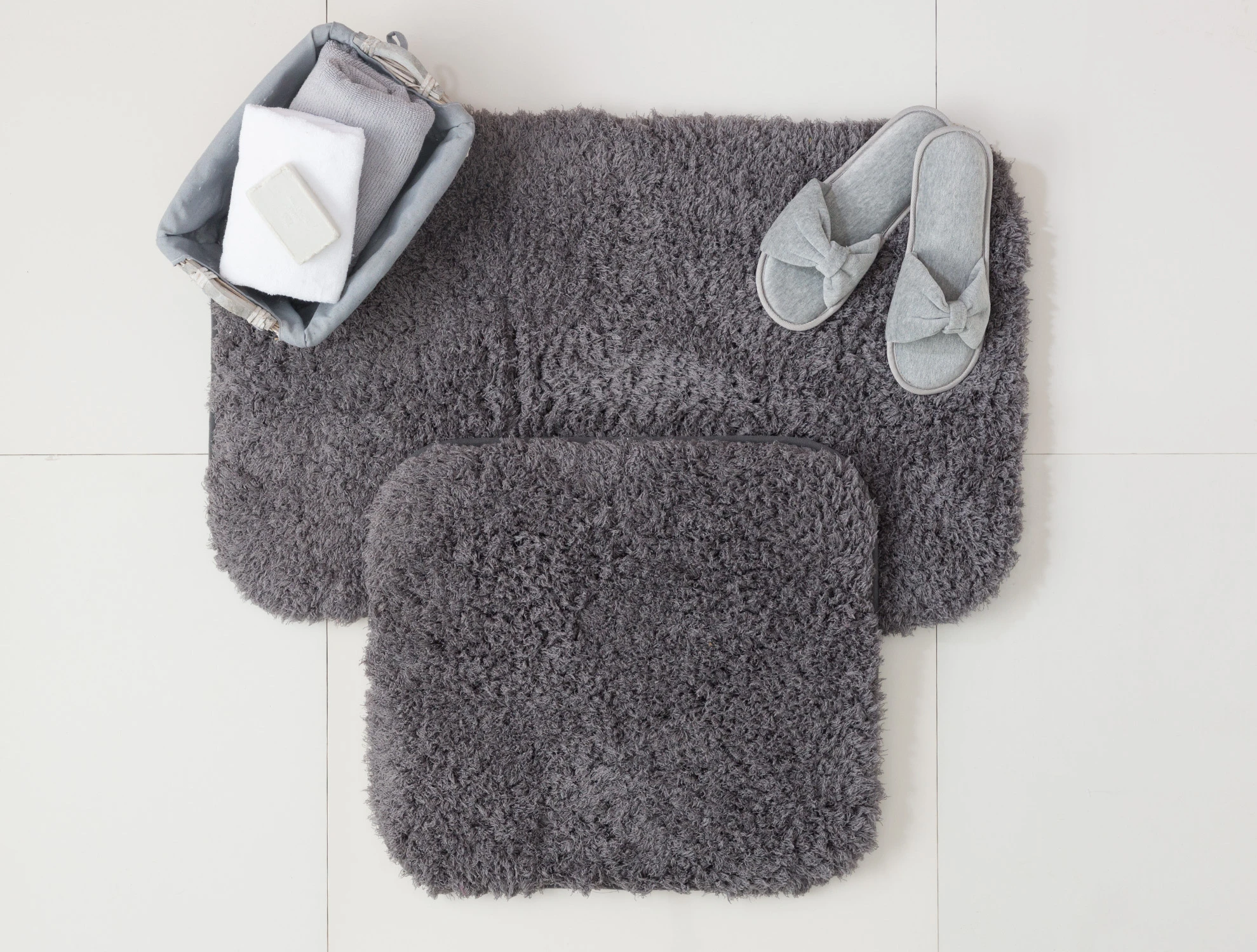 Product Description :Sheep 2 Pieces Bath Mat - Anthracite With the soft textured bath mat, you feel comfortable using it every time you step on it. The elegantly designed dual model Sheep Bath Mat will add movement to your bathroom with different color options.Technical Specifications:Product Type: %100 PolyesterColour: Anthracite Place of Production: TurkeyCarpet Height: 30mmBase Fature: Antislip PVCDimensions:50x80 cm45x50 cmWashing Instructions:* Machine wash at 30 degrees or by hand.* Iron at medium temperature.* Do not use fabric softener or bleach.* Do not dry in the machine.* Do not dry clean.Package Content:Mat: 2 Pieces