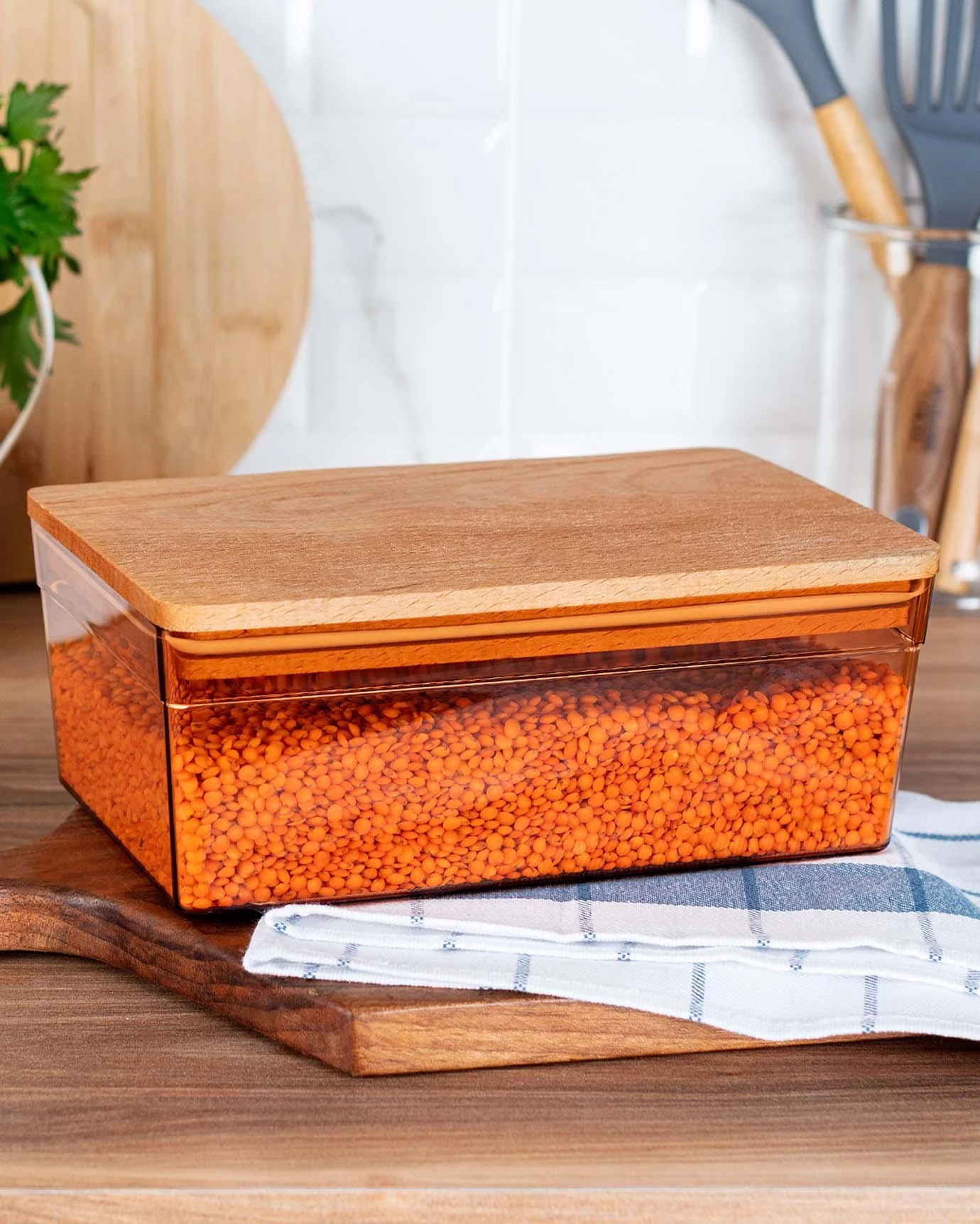The storage container, which will be in perfect harmony with your kitchen, will keep you away from insects and dampness with its lids.