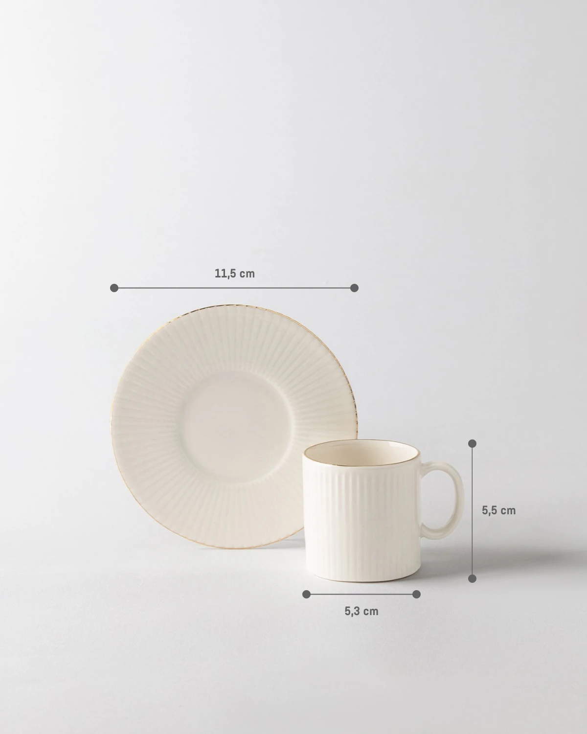 Verly 6-Person 12-Piece Coffee Cup Set - White/Gold - 95 mlThis coffee cup set, sure to be a favorite among coffee lovers, will be an indispensable part of your enjoyable moments at home or at work. It is also an excellent choice as a gift for your loved ones on special occasions. Combining elegance and taste, this set will make your coffee experience unforgettable.Technical Specifications:Product Type: New BoneVolume: 95 mlColor: White/GoldDimensions: 5.5x5.3x11.5 cmCountry of Origin: TurkeyPackage Contents:Cups: 6 PiecesPlates: 6 Pieces0