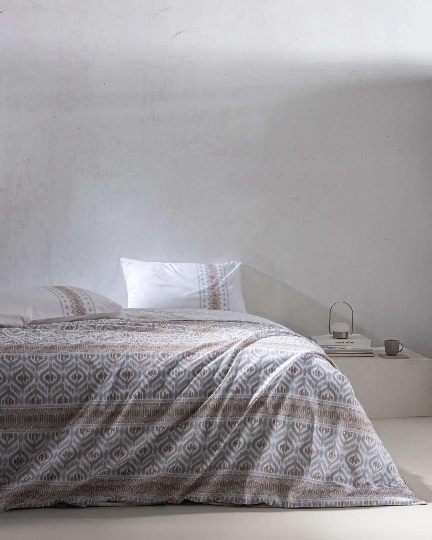 Abrial Double 100% Cotton Ranforce Printed Duvet Cover Set - Beige/Grey