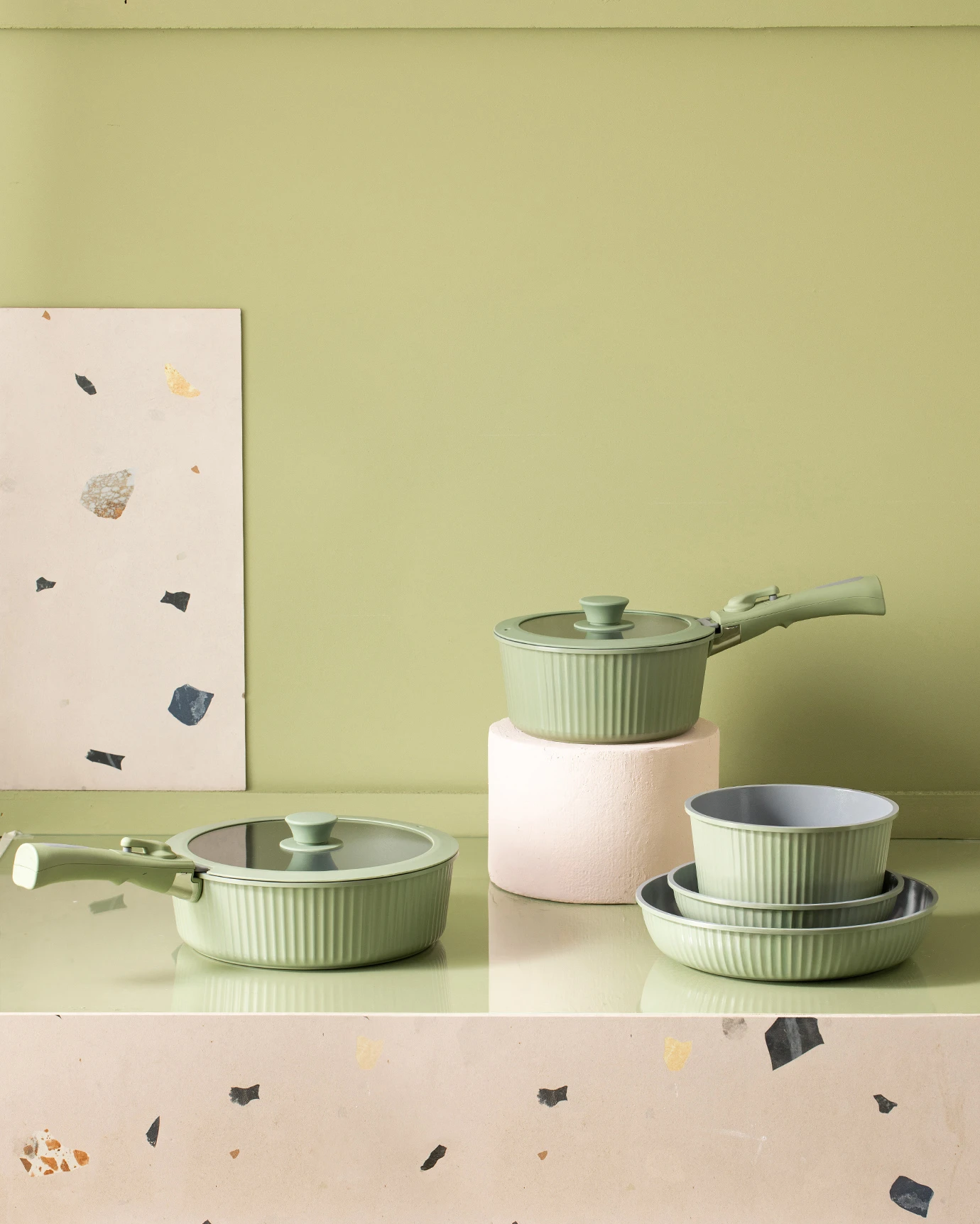 Benard 9 Piece Cookware Set - GreenThe Cookware Set, which offers everything you need to prepare your favorite dishes, gives you a healthy and delicious cooking experience.Benard 9 Piece Cookware Set - GreenThe Cookware Set, which offers everything you need to prepare your favorite dishes, gives you a healthy and delicious cooking experience. Its non-stick surface makes cooking and cleaning practical and provides ease of use. Thanks to its scratch-resistant structure, it has been used easily for many years. You can capture the taste and harmony in your kitchen with modern and stylish color options.Technical Specifications:Product Type: AluminumColor: GreenPlace of Manufacture: ImportedBody: Cast AluminumLid: GlassKnob: Wooden Soft Bakelite HandleHandle: Wooden Soft Bakelite HandleInner Coating: Ceramic CoatingOuter Coating: Heat Resistant PolishBase: Dot Induction + LogoSize-Capacity:Frying Pan: 20x5 cm - 1000 mlFrying Pan: 26x6 cm - 2000 mlDeep Frying Pan: 26x9 cm - 3400 mlSaucepan: 18x10 cm - 1800 mlSaucepan: 20x10 cm - 2200 mlPackage Contents:Pot: 3 PiecesPan: 2 PiecesGlass Lid: 2 PiecesRemovable Handle: 2 Pieces