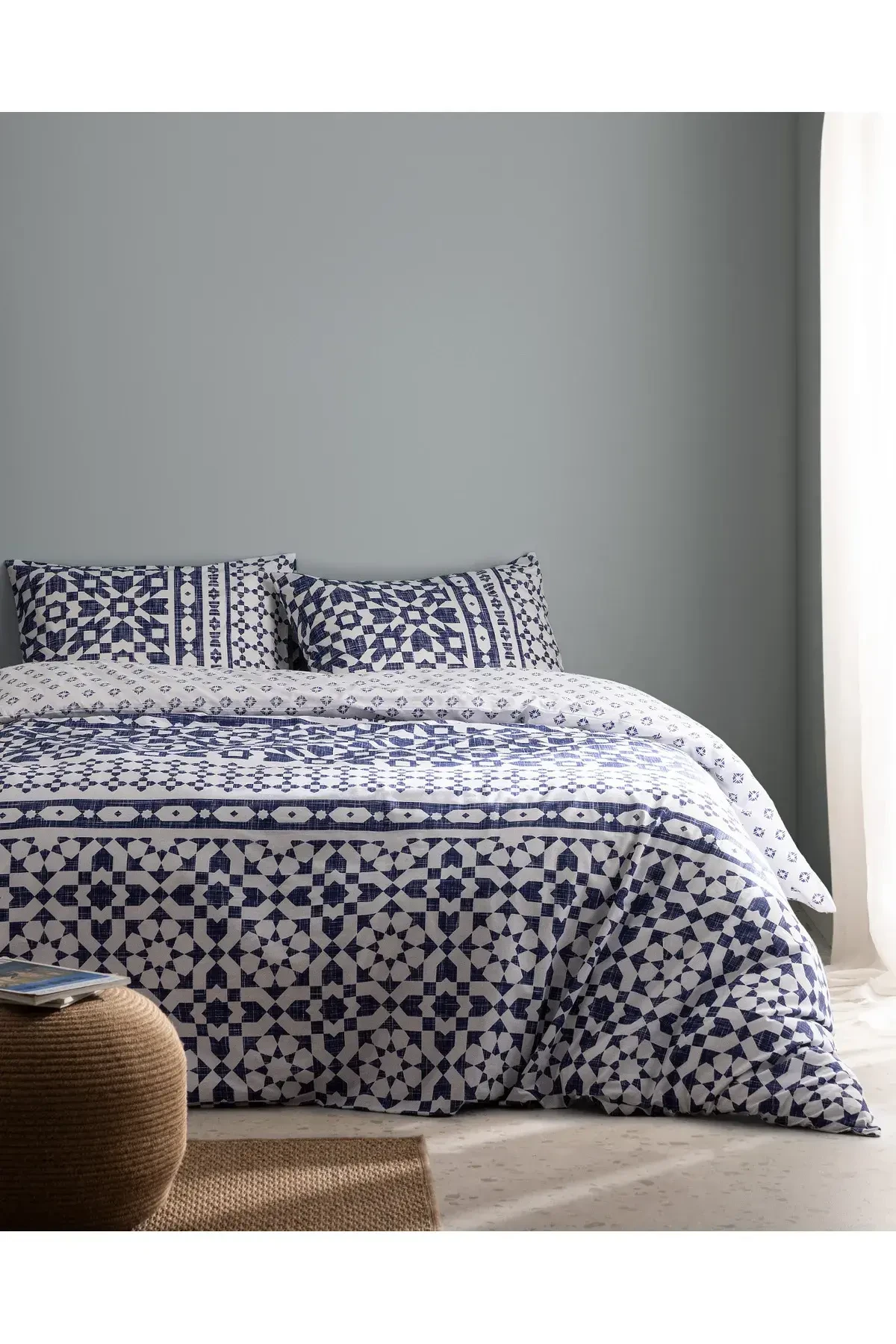 Deor Double 100% Cotton Ranforce Printed Duvet Cover Set - Navy Blue