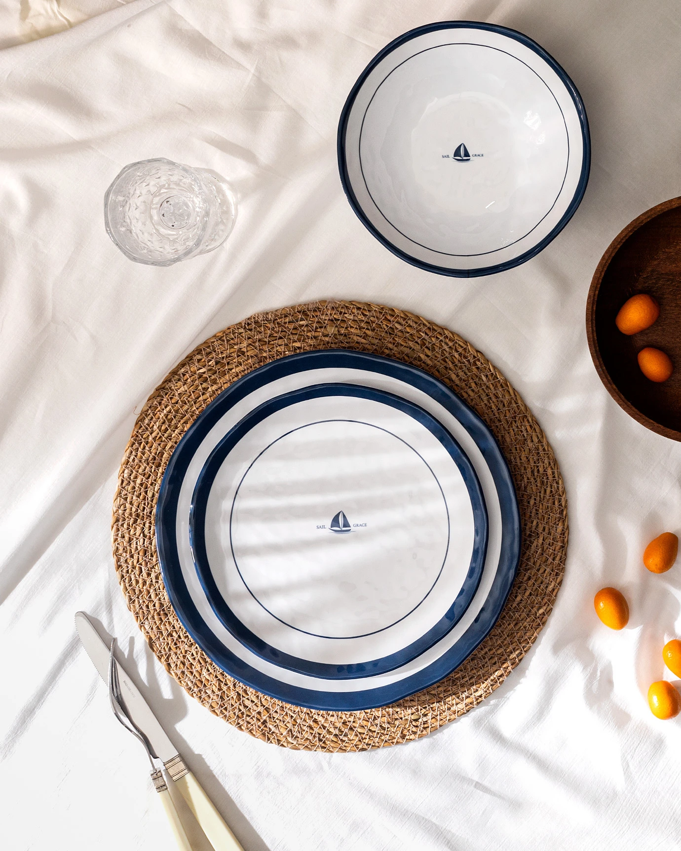 Fanette 18 Piece Dinner Set for 6 People - Blue/White