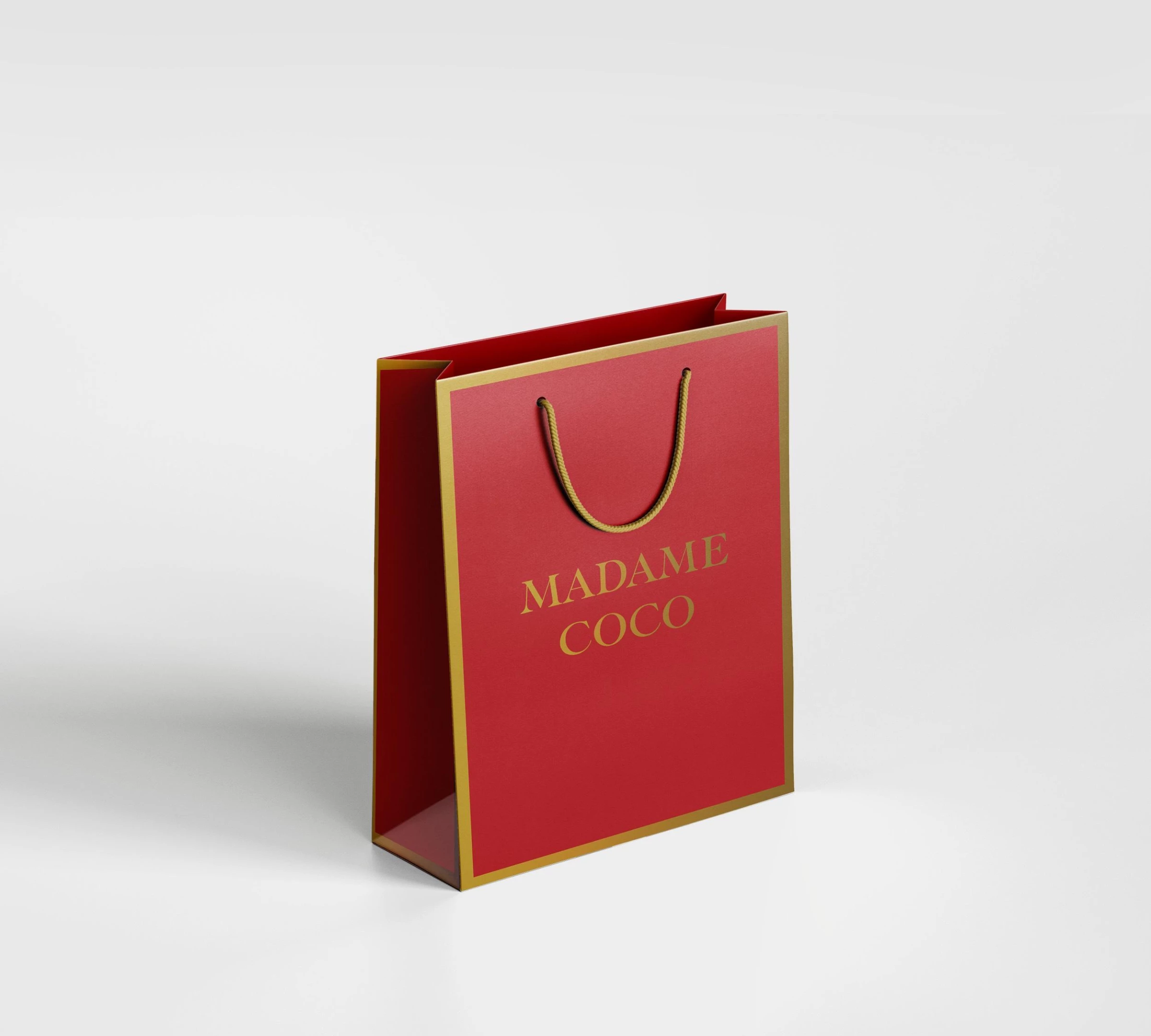 A cheerful red gift bag with a crisp, matte finish and sturdy rope handles, making it a perfect choice for presenting gifts with a touch of elegance and festivity. Ideal for various occasions.