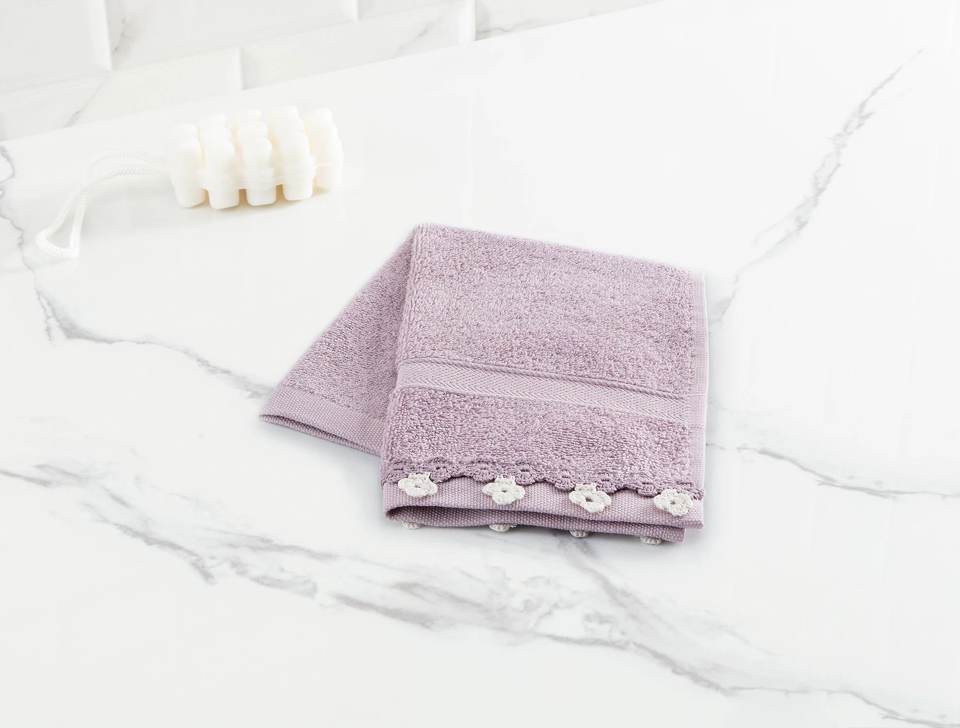 The Jeanne Crocheted Face Towel with crochet details prepared by handwork will change the atmosphere of your bathroom with its colors and elegant appearance. 100% Cotton Madame Coco Face Towels are friendly to your skin with their soft texture and high water absorbency.