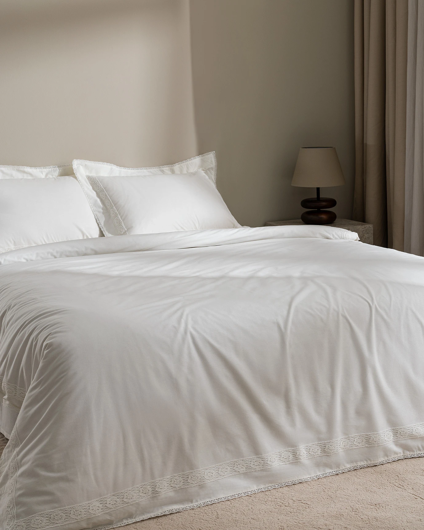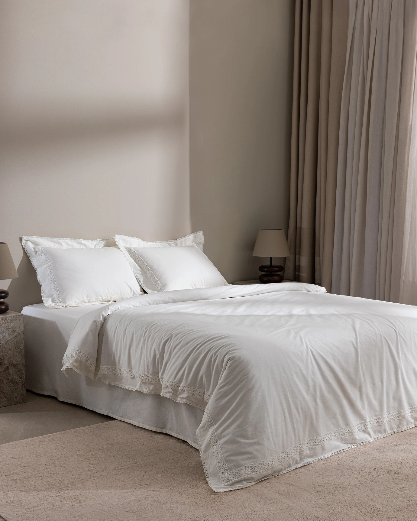 Kaviera King Size 100% Cotton Embroidered Duvet Cover Set - WhiteThe product you are looking for to renew your bedroom and have a comfortable sleep experience every night is here!Kaviera King Size 100% Cotton Embroidered Duvet Cover Set - WhiteThe product you arpTechnical Specifications:Product Type: King SizeFabric Type:100% CottonColor: WhiteBed Sheet Type: Without TiresNumber of Wires: 57 WiresSize:Duvet Cover: 240x220 cmBed Sheet: 260x280 cmPillowcase: 50x70 cmPlace of Manufacture: TurkeyPackage Content:Duvet Cover: 1 PieceSheet: 1 PiecePillow Case: 2 PiecesCottonWashing Instructions:*Wash at 30 degrees.*Do not use bleach.*Machine dry at low heatWashing Instructions*Wash at 30 degrees.*Do not use bleach.*Machine dry at low he