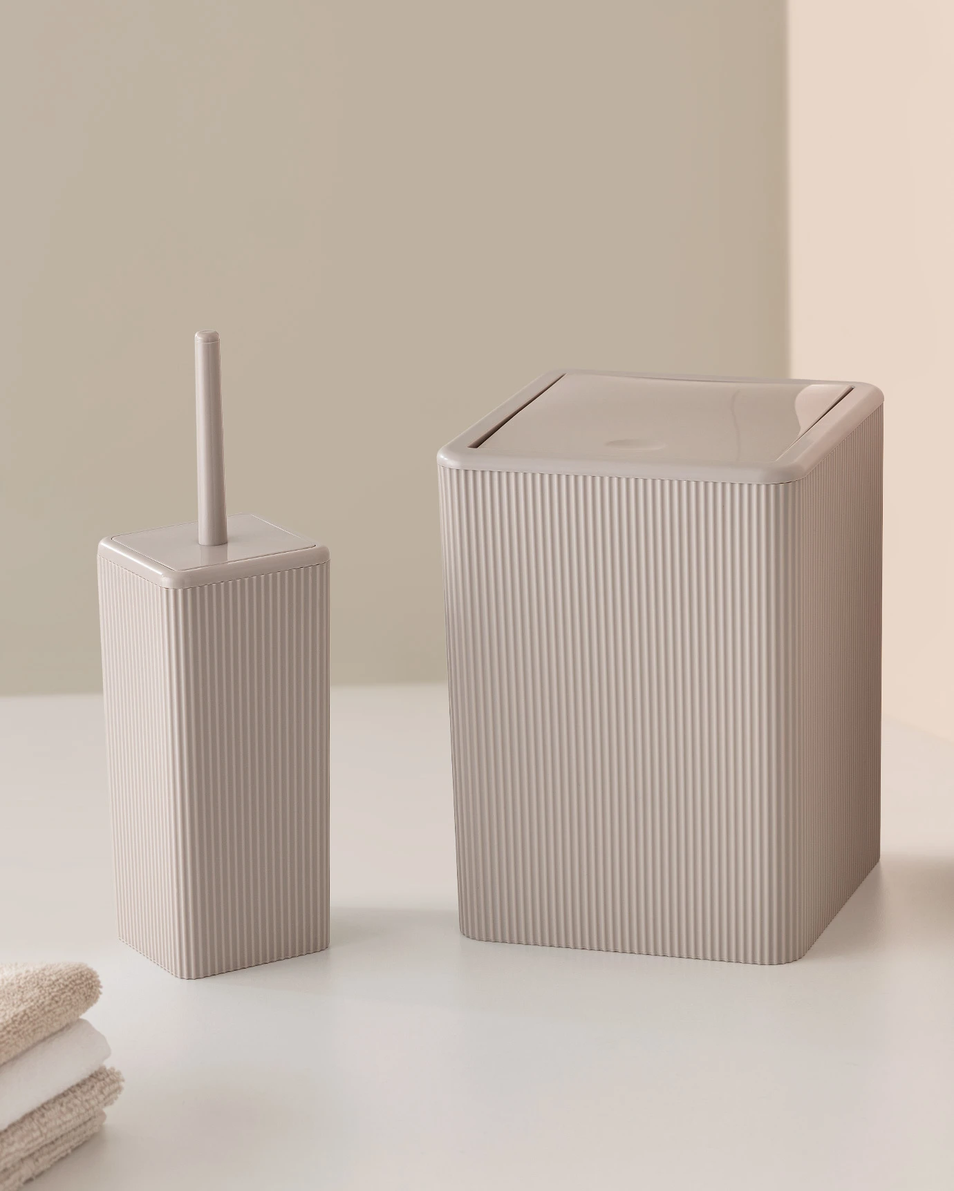 Kelly 2-Piece Bathroom Set in Light Coffee, including a toilette brush and Trash bin for a standout, stylish bathroom.