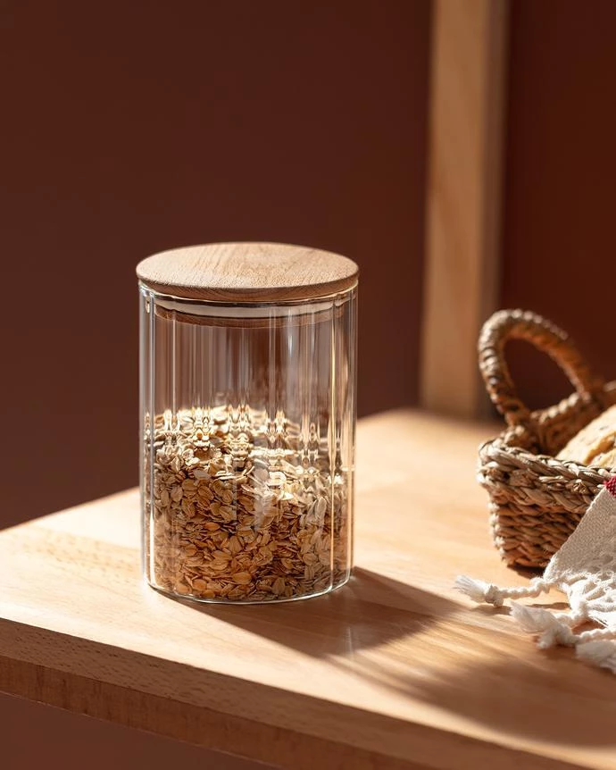 Transparent Store your favorite snacks or dry foods safely with the Lunel Optical Cylinder Glass Jar. While it preserves the freshness of the food for a long time, its wide mouth makes it easy to fill and unload your food. While it will help you store various foods, it will add difference to the decor of your kitchen counter with its stylish design.