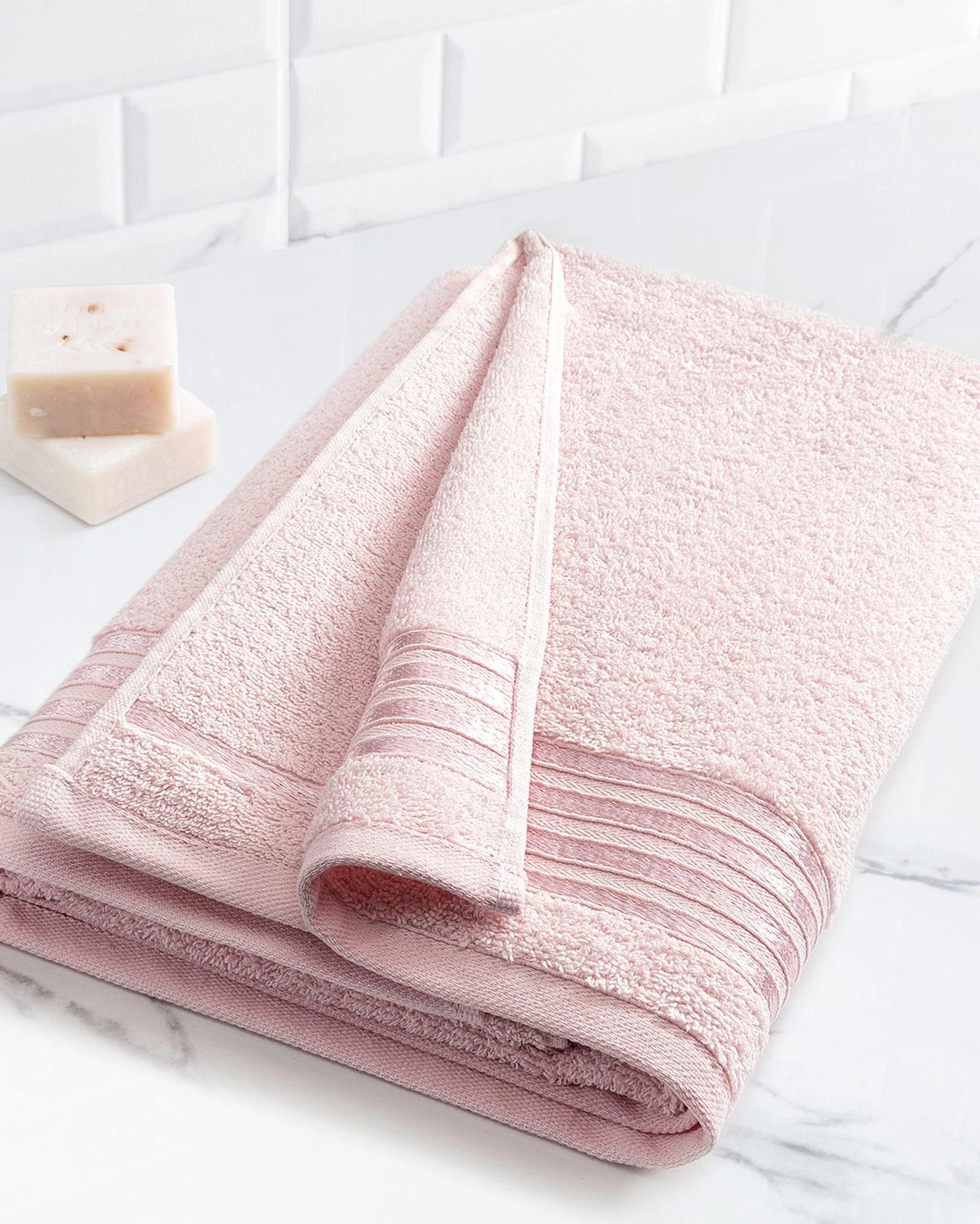 Maynor Bordered Flouche Bath Towel - Powder