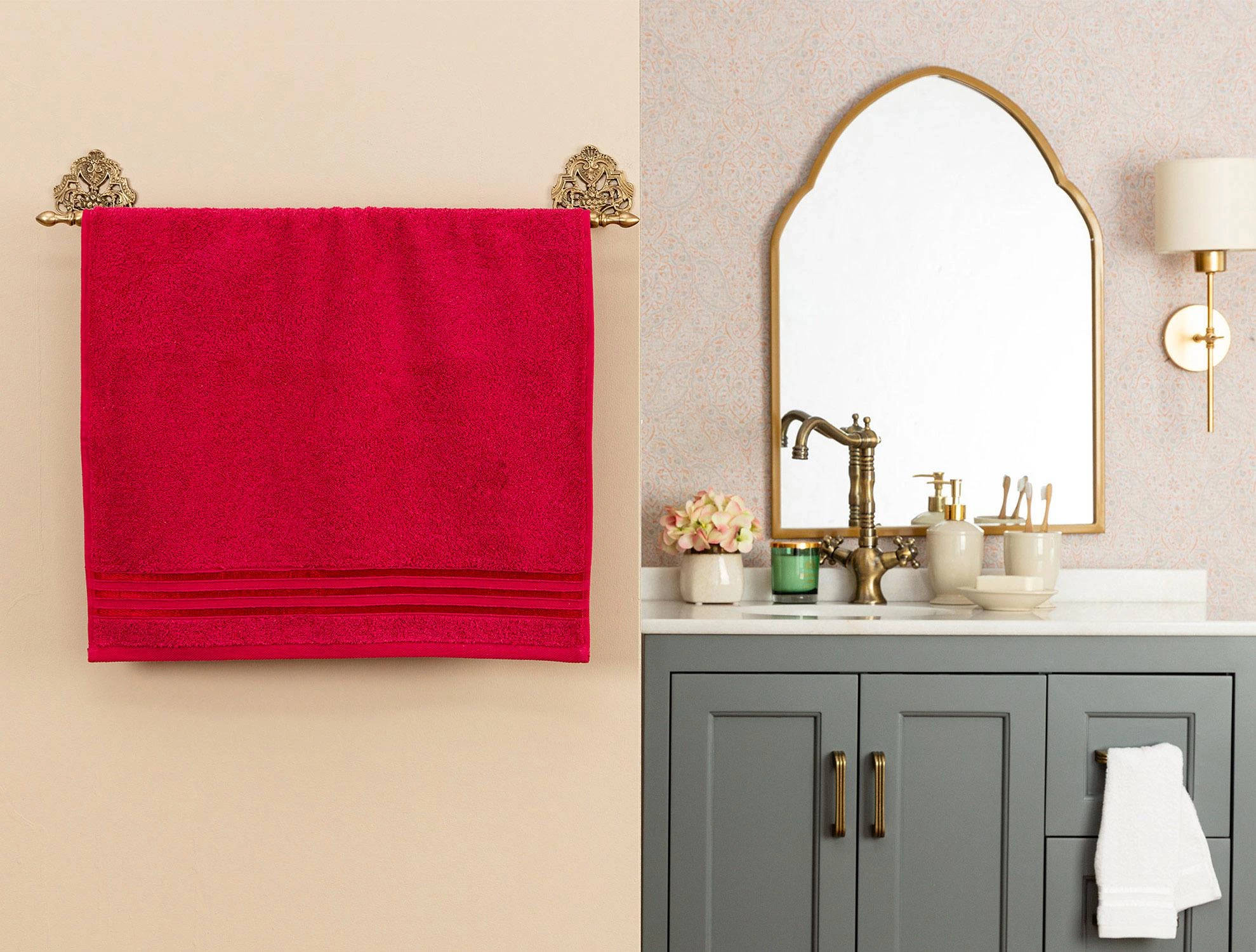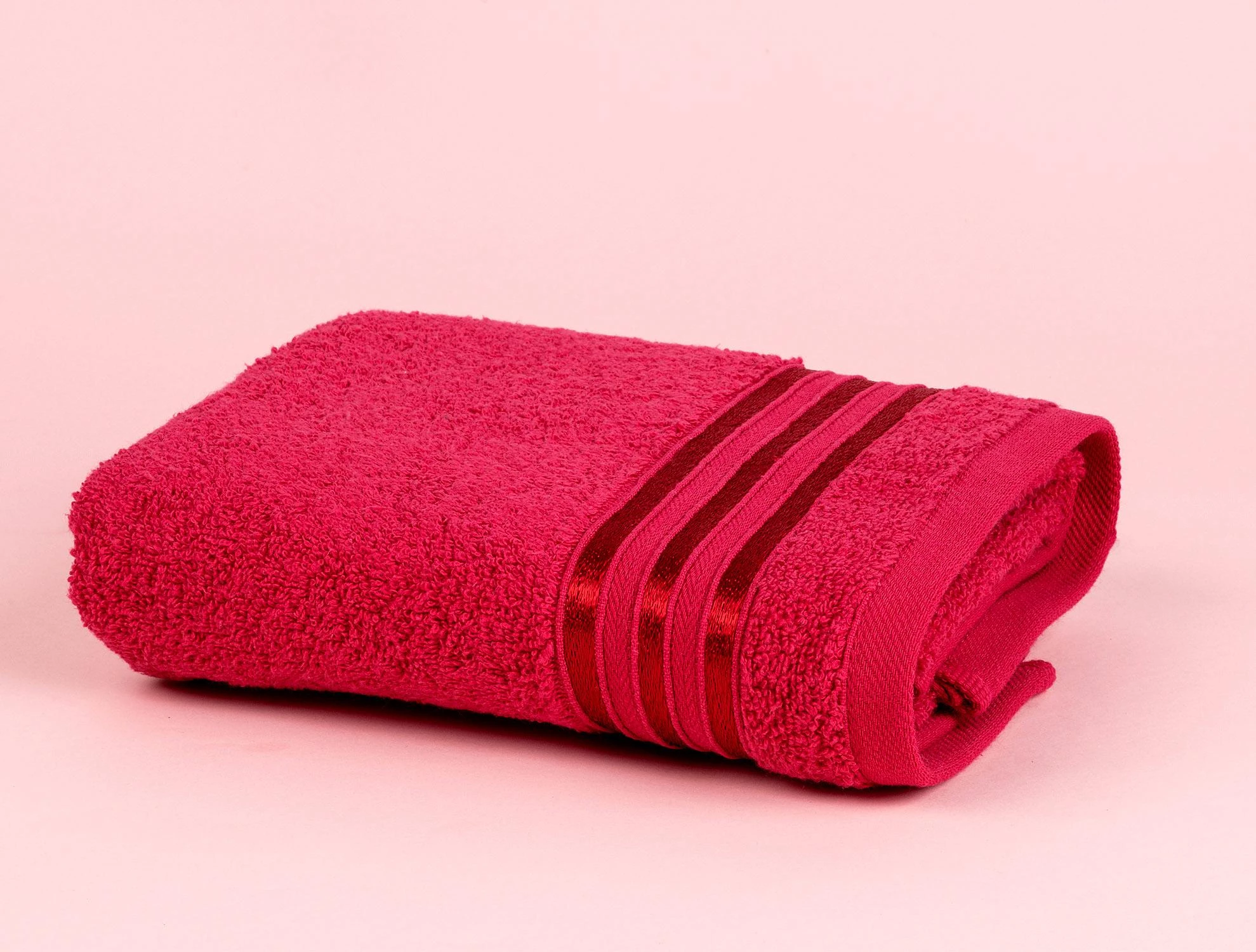 Maynor Bordered Flouche Face Towel - Dark Pink