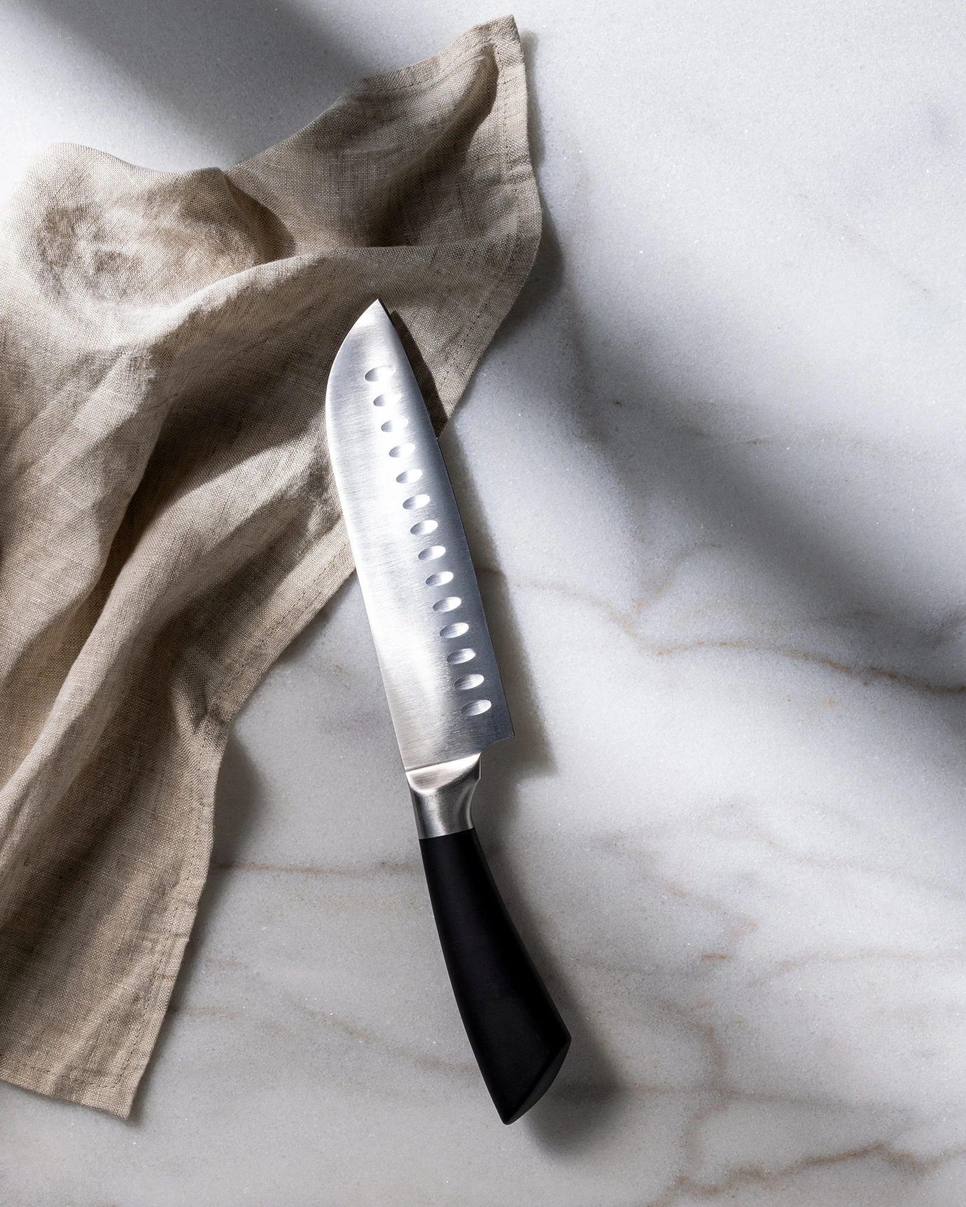 Orva Santoku Knife - BlackDesigned for those who want to achieve mastery in food preparation. This knife, which provides a balanced structure and superior sharpness, offers perfect control in every cut. While providing long-lasting use with its durable structure, it also adds style to your kitchen with its elegance.Technical Specifications: Product Type: Stainless Steel Size: 31 cm Color: Black Origin: ImportedPackage Content: Knife: 1 Piece