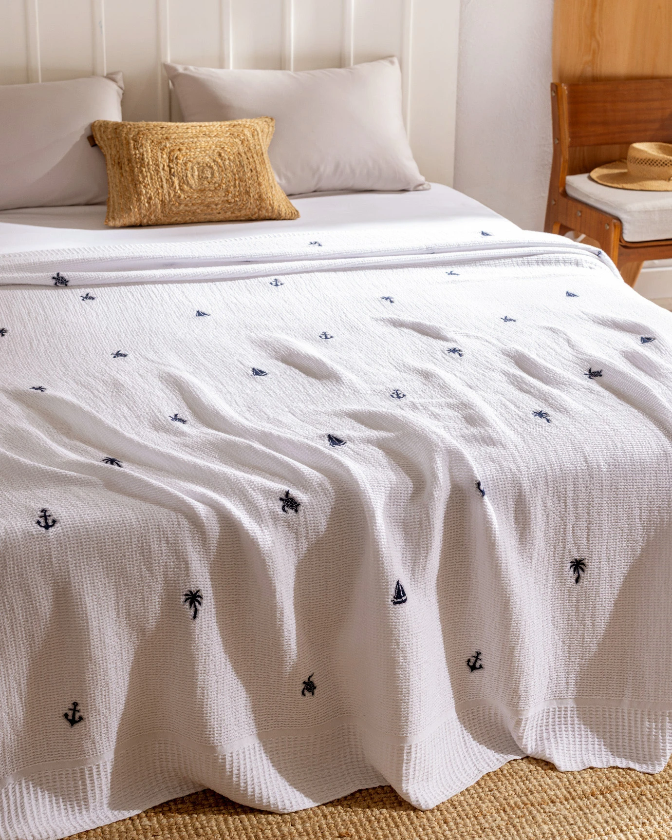 The cotton bedspread, which has a very elegant and stylish appearance with its ethno-modern texture design, will be a brand new comfort for your bed...