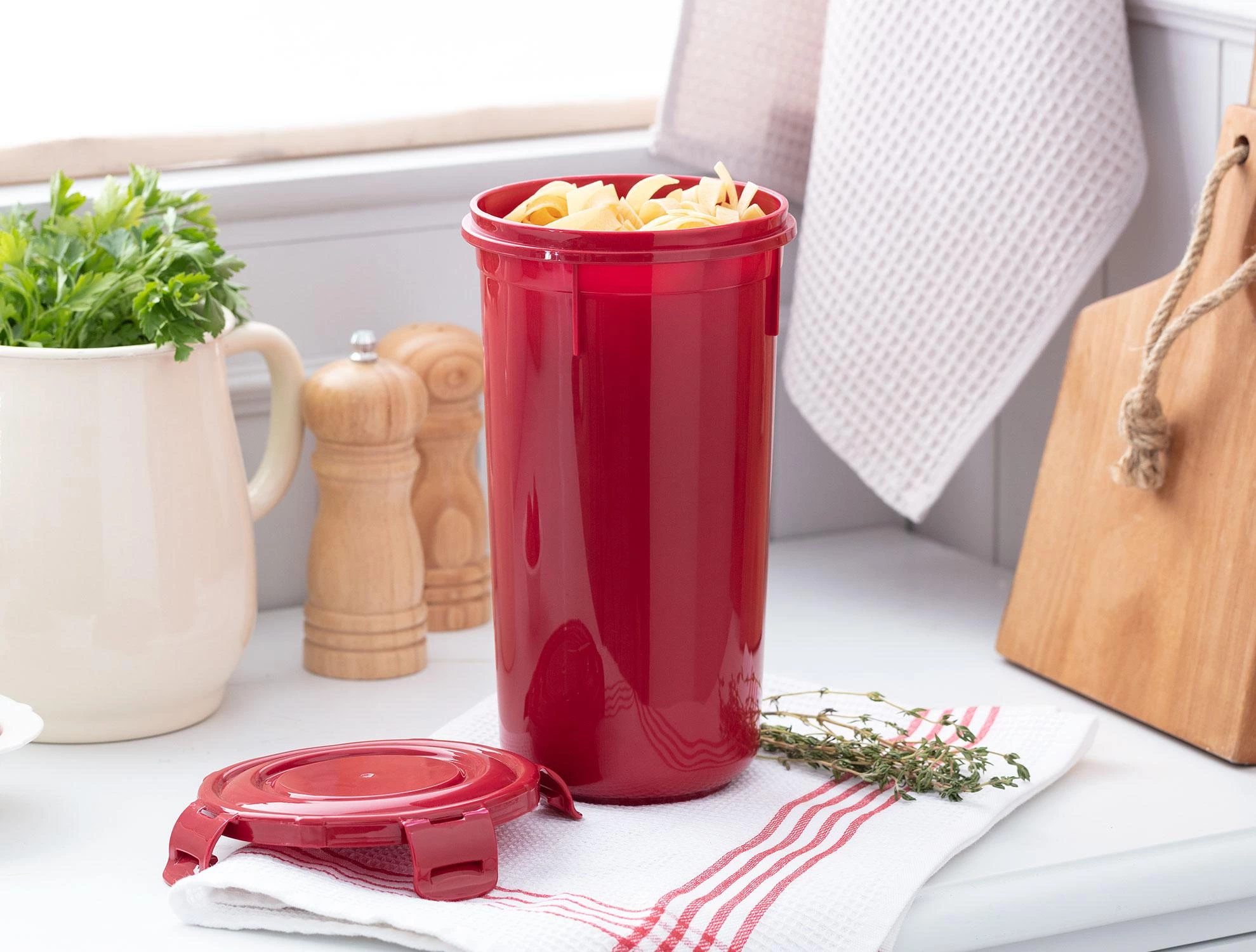 The Daily storage container, which will allow you to have a different design among the storage containers with its large volume and vertical structure, will beautify your kitchen with the soft touches of powder color. You will be able to easily store many dry foods, from dried beans to lentils, from chickpeas to spaghetti, thanks to the wonderful design of the Daily storage container.