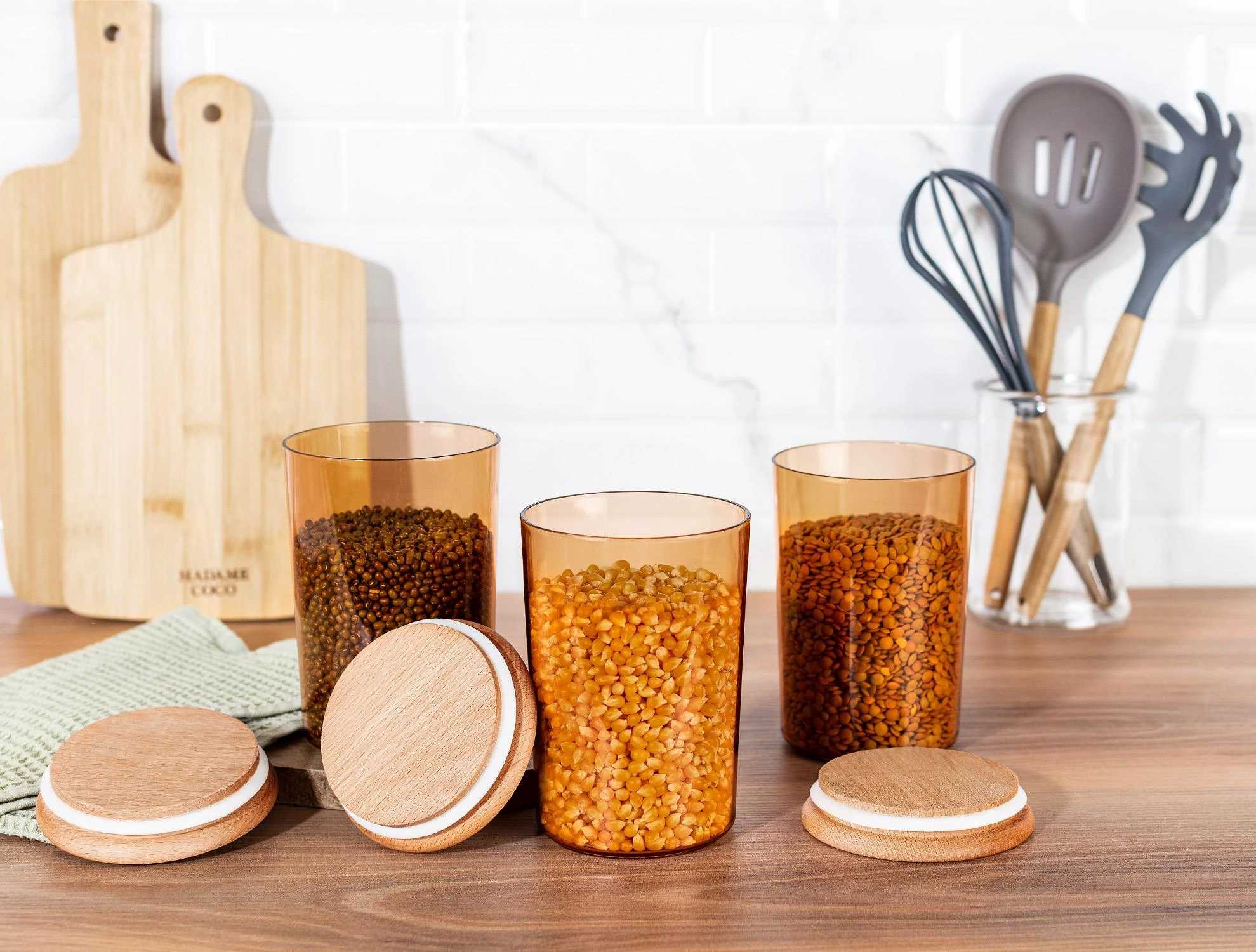 Storage Box With Wooden Lid 900Ml 3Pcs