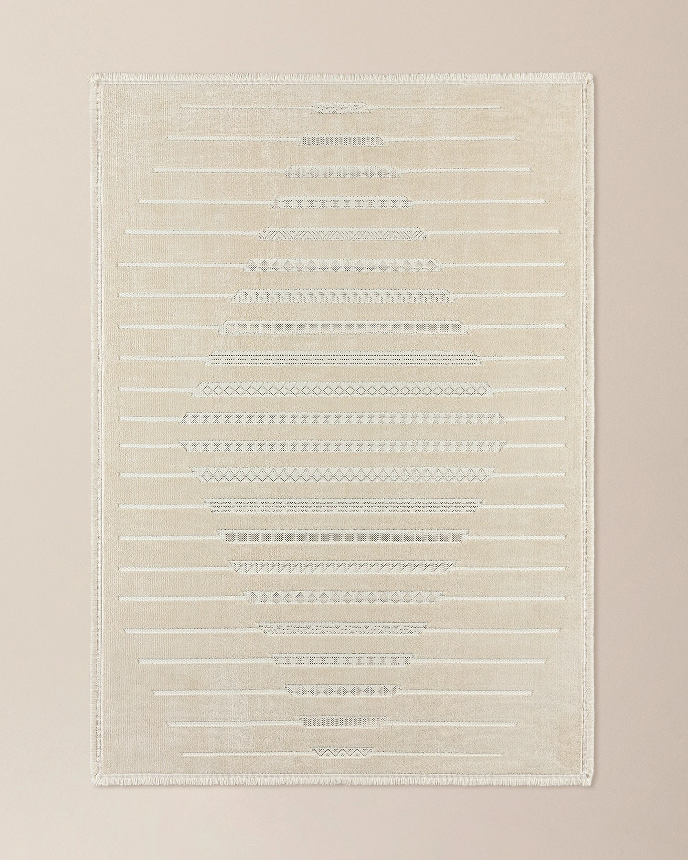 Treillis Carpet - Bone You will finally find the carpet you are looking for! This carpet, which adds nobility to your bedroom, office, living room or any room you want with its modern design and fascinating elegance, is also very useful with its colors and sizes, and will change the atmosphere of the environment even on its own with its most beautiful patterns.Technical Specifications:Product Type: 100% PolyesterColor: BoneDimensions: 80x150 cmPoint Count: 125.440 points/m²Pile Height: 7 mm/ 14 LancetProduct Base: CottonDensity: 32x28Pile Yarn: 100% PolyesterEdge Type: 4 Edge FringesProduct Code: 8684427033418Production Location: TurkeyPackage Content: Carpet: 1 PieceWashing Instructions: Do not wash. Do not bleach. Do not dry clean.